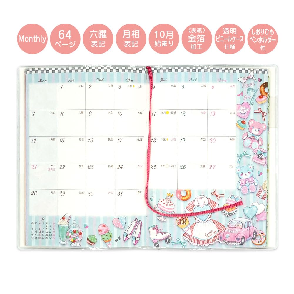 【仕様】紙/表紙に透明ビニールケース仕様 月間 月曜始まり 六曜月相表記 表紙金箔加工