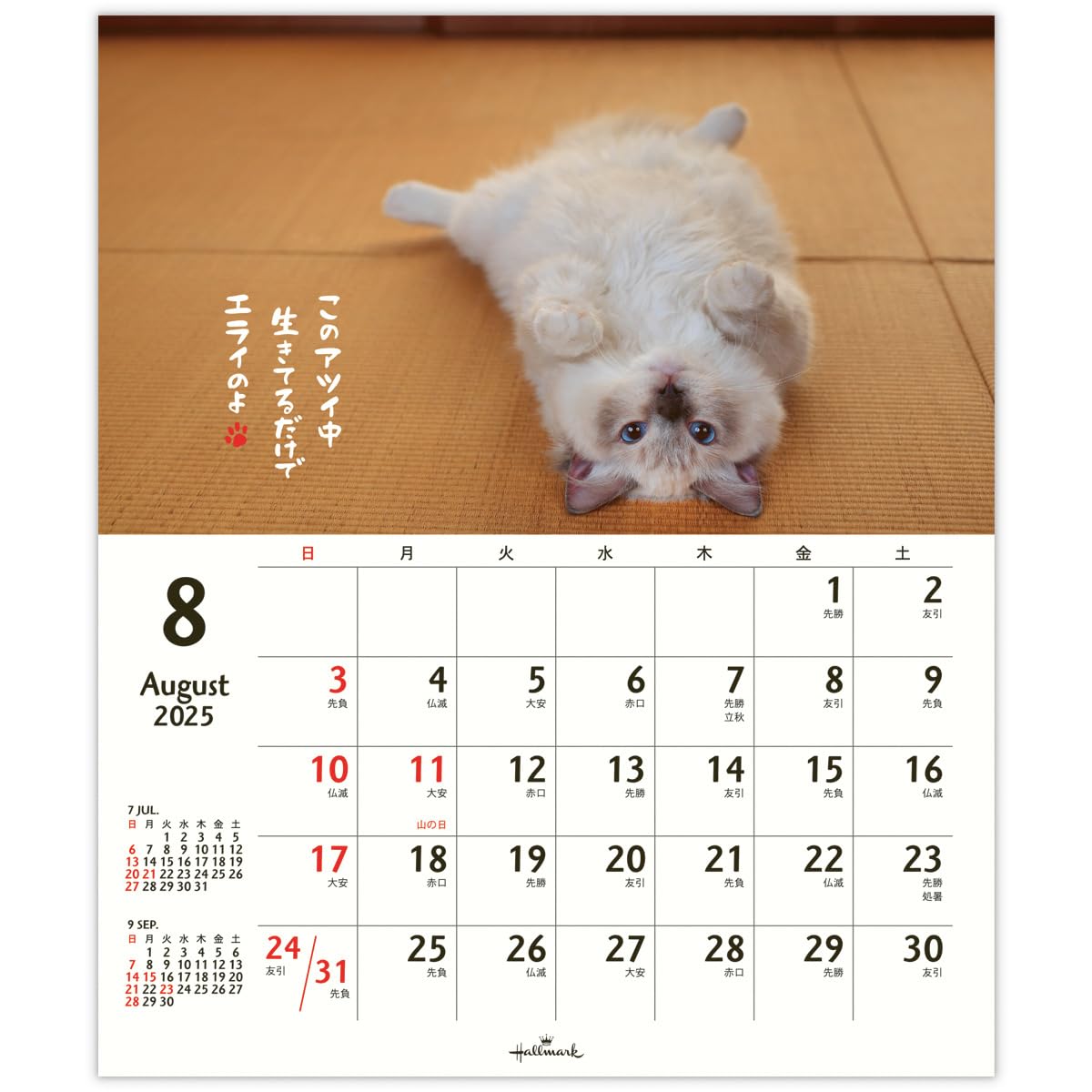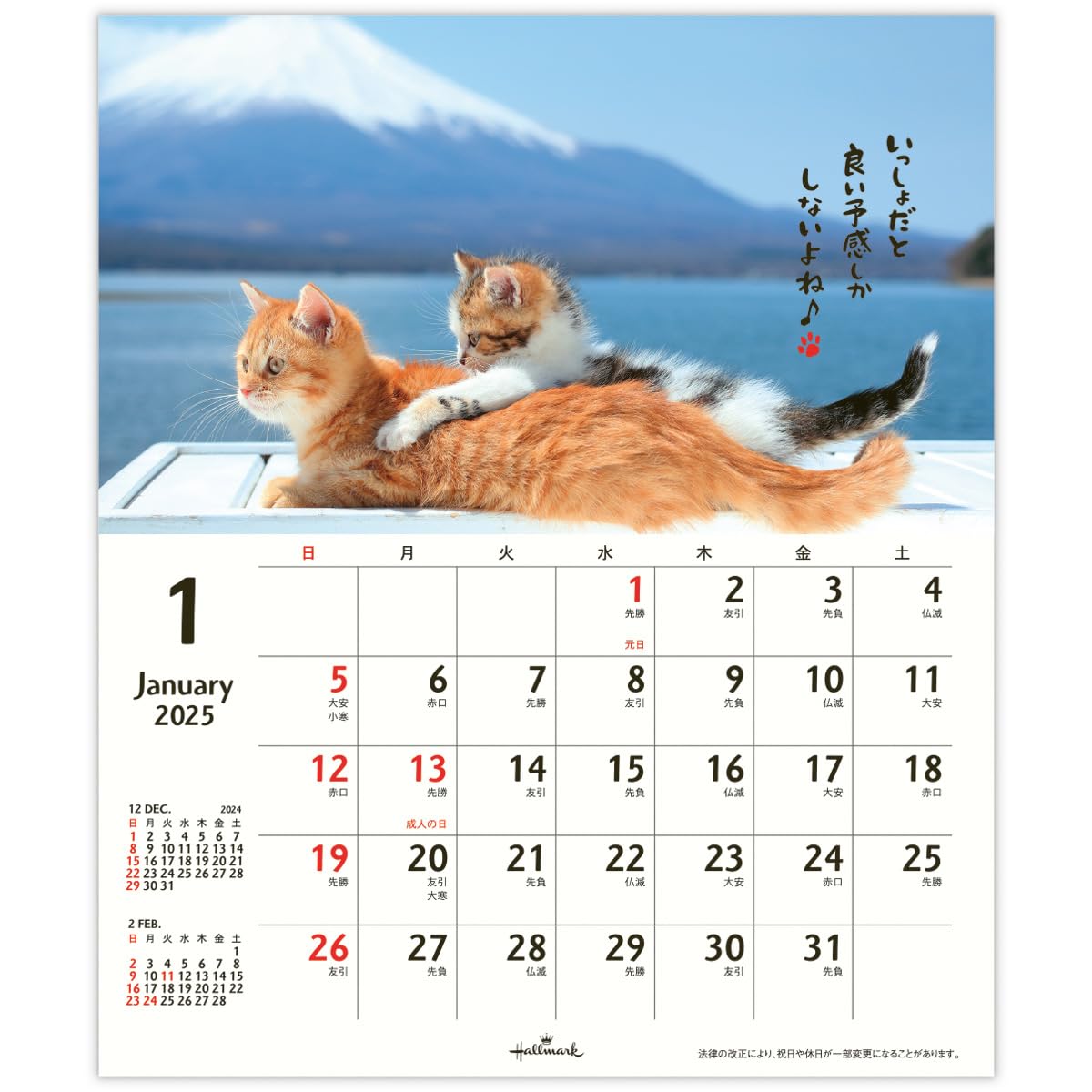 ホールマーク 2025年 カレンダー 壁掛け 小 ほめにゃんこ 834-739