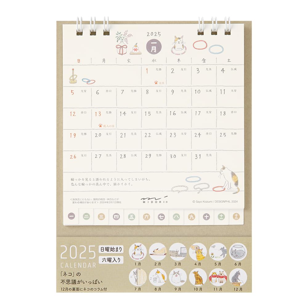 ミドリ 2025年 カレンダー 卓上 S ネコ柄 31310006