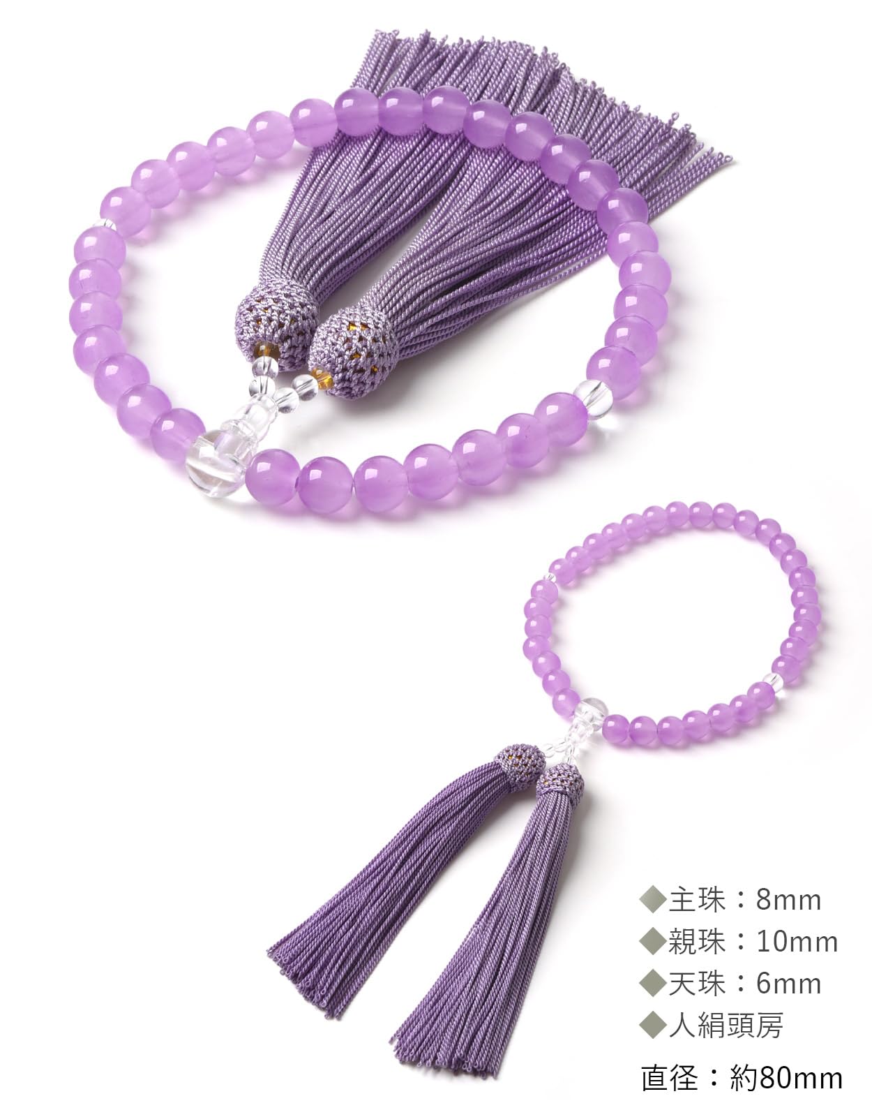 【EsuonHappiness】数珠 女性用 8mm 頭房 硝子 略式数珠 すべての宗派で使える 選べるお色 法事 葬儀 数珠袋付き 天然石色 人絹房 (藤雲石色)