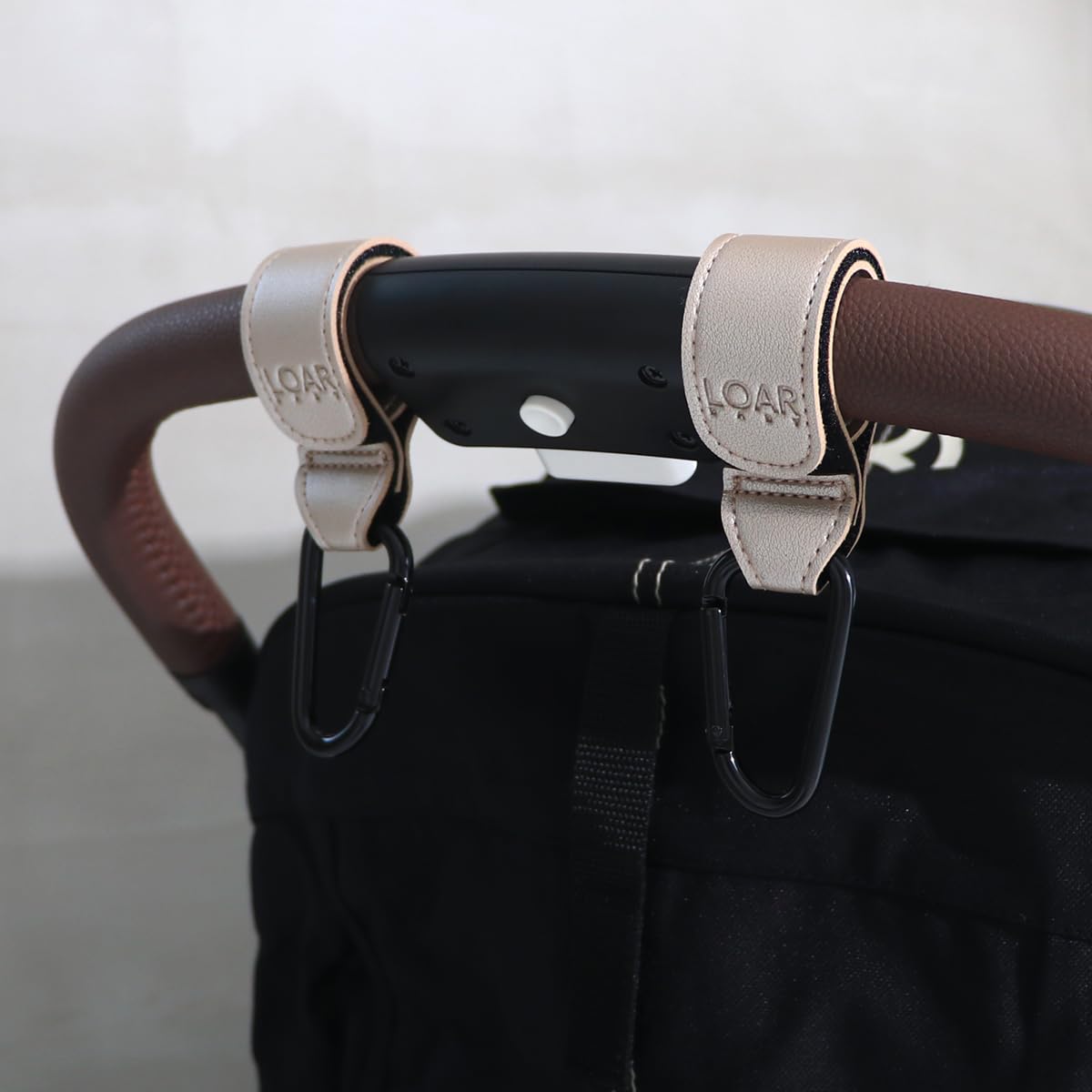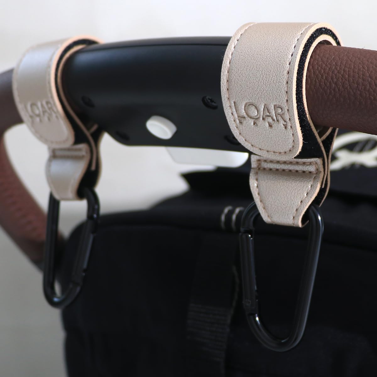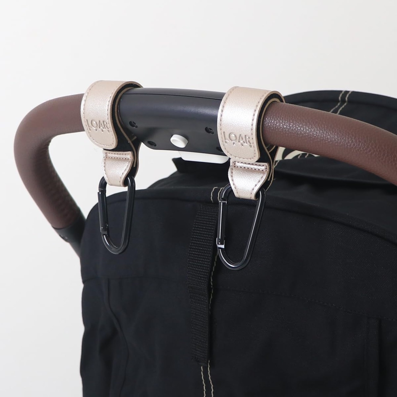 (送料込)LOAR BABY(ロアベビー) ベビーカーフック カラビナ ベビーカーグッズ ベビーカー荷物掛け 2個セット カラビナフック おしゃれ 合皮 ギフト プレゼント (シャンパンゴールド) | デイリーメインベース