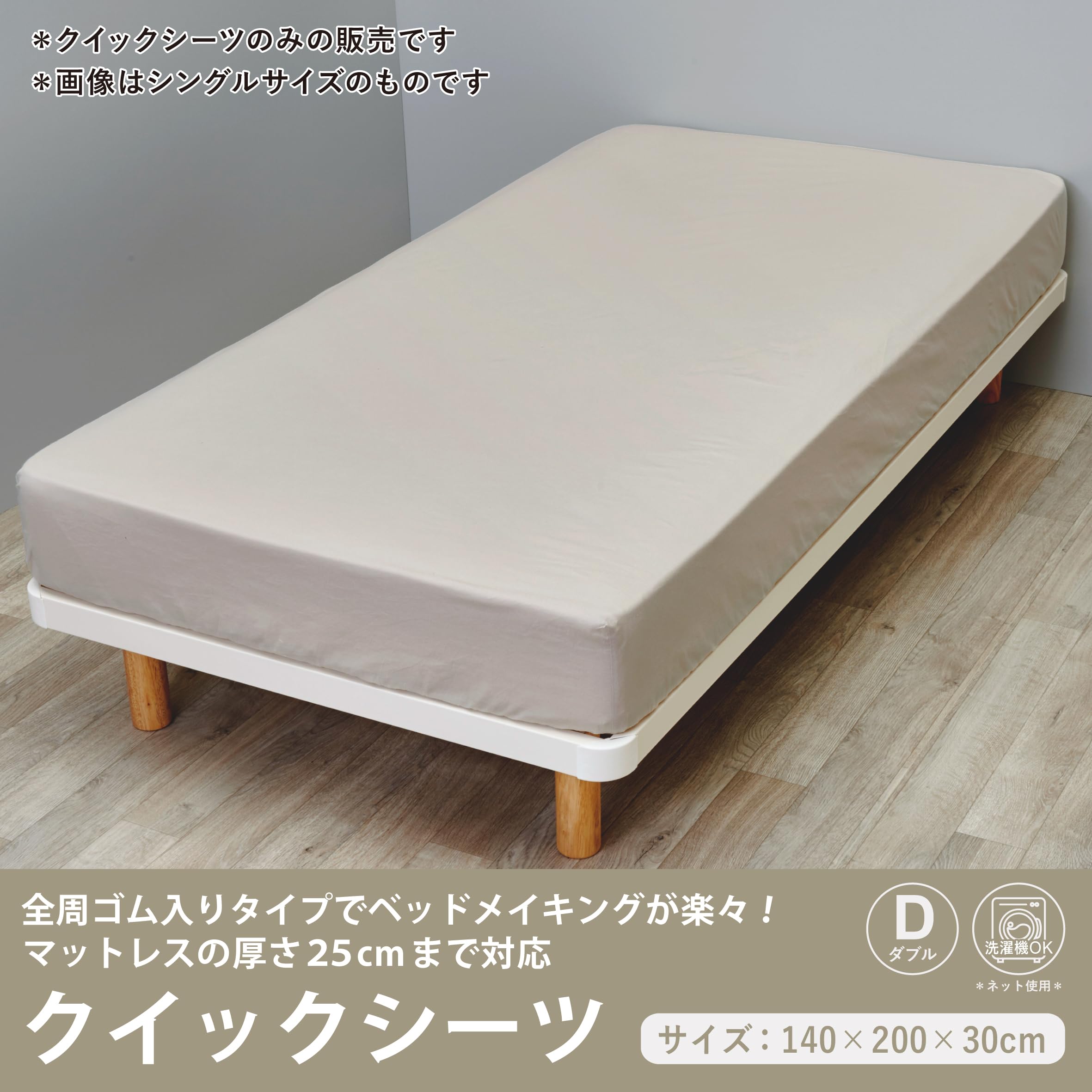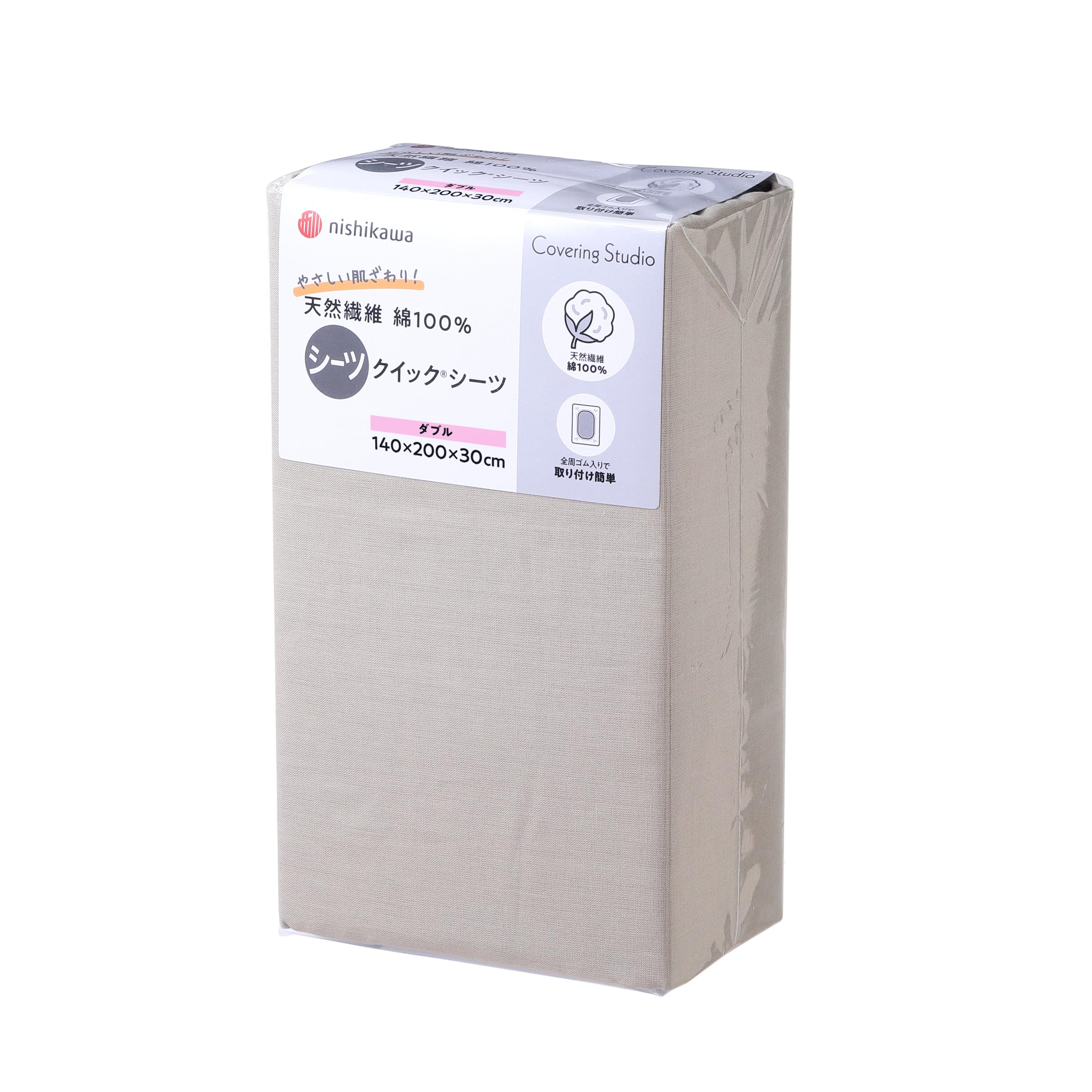 nishikawa【西川】 クイックシーツ ダブル 洗える 肌に優しい触り心地の綿100% ボックスシーツ 装着簡単でずれにくい 無地 カバーリングスタジオ CT4007 ベージュ PK24380057
