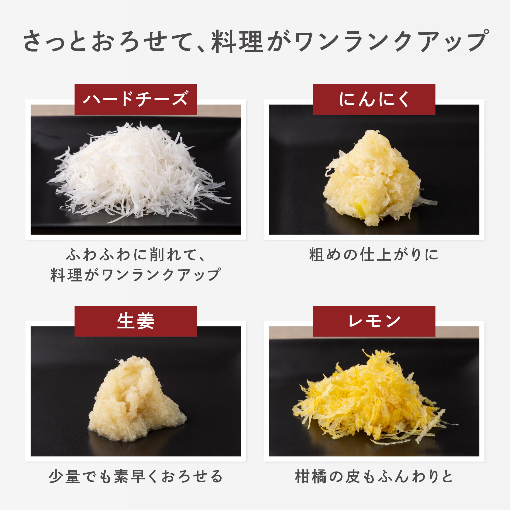 ハードチーズや柑橘のほか、生姜、にんにくなど日常的に使う食材もおろせるグレーター