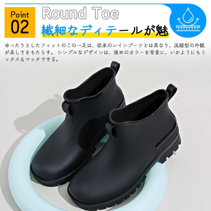ziitop レインブーツ レディース ショート レインシューズ 防水 雨靴 ラバーブーツ ショートブーツ 梅雨対策 滑り止め 通勤 おしゃれ 軽量 柔らかい きれい 晴雨兼用 Rain Boots 履きやすい