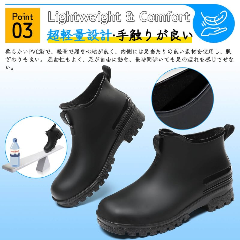防水仕様のPVC素材:天然ゴムを使用し、防水性と柔らかさに優れています。レインスニーカーに水が染み込む心配がなく、雨や雪の日でも安心して快適に通勤できます。