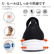 【軽量&通気】片足120gの超軽量で、靴の存在を忘れるほどの軽さ、長い時間の履きでも疲れにくいです。アッパーは通気メッシュを採用し、通気性が抜群で、靴内は蒸れにくいなります。一日中爽やかで快適です。靴紐を結ぶ手間がなく手を使わず着脱スムーズ。