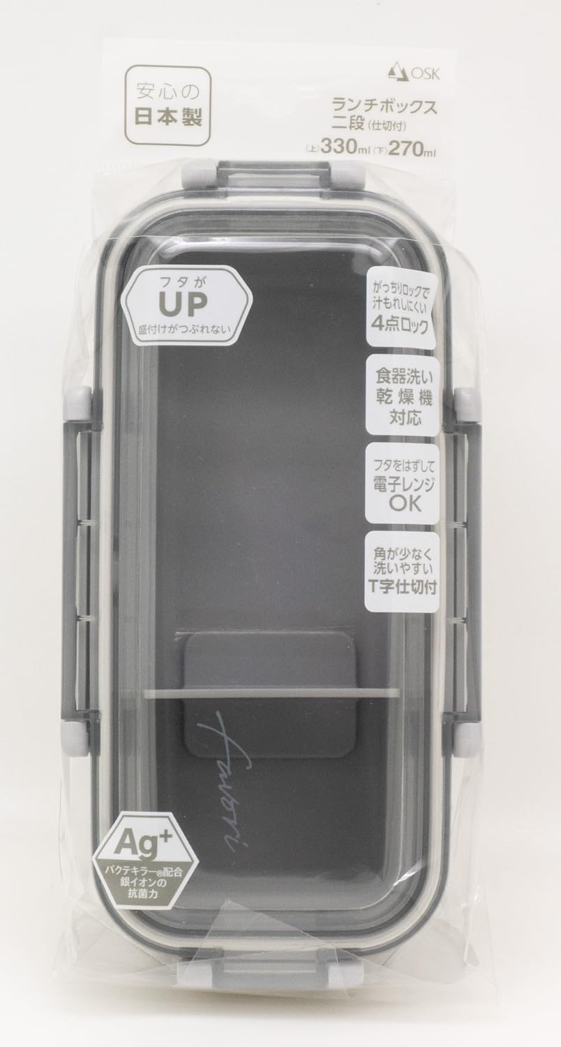 オーエスケー DISH UP LUNCH ランチボックス二段 グレー 【PCW-600S】 食洗機対応 レンジ対応 仕切付き