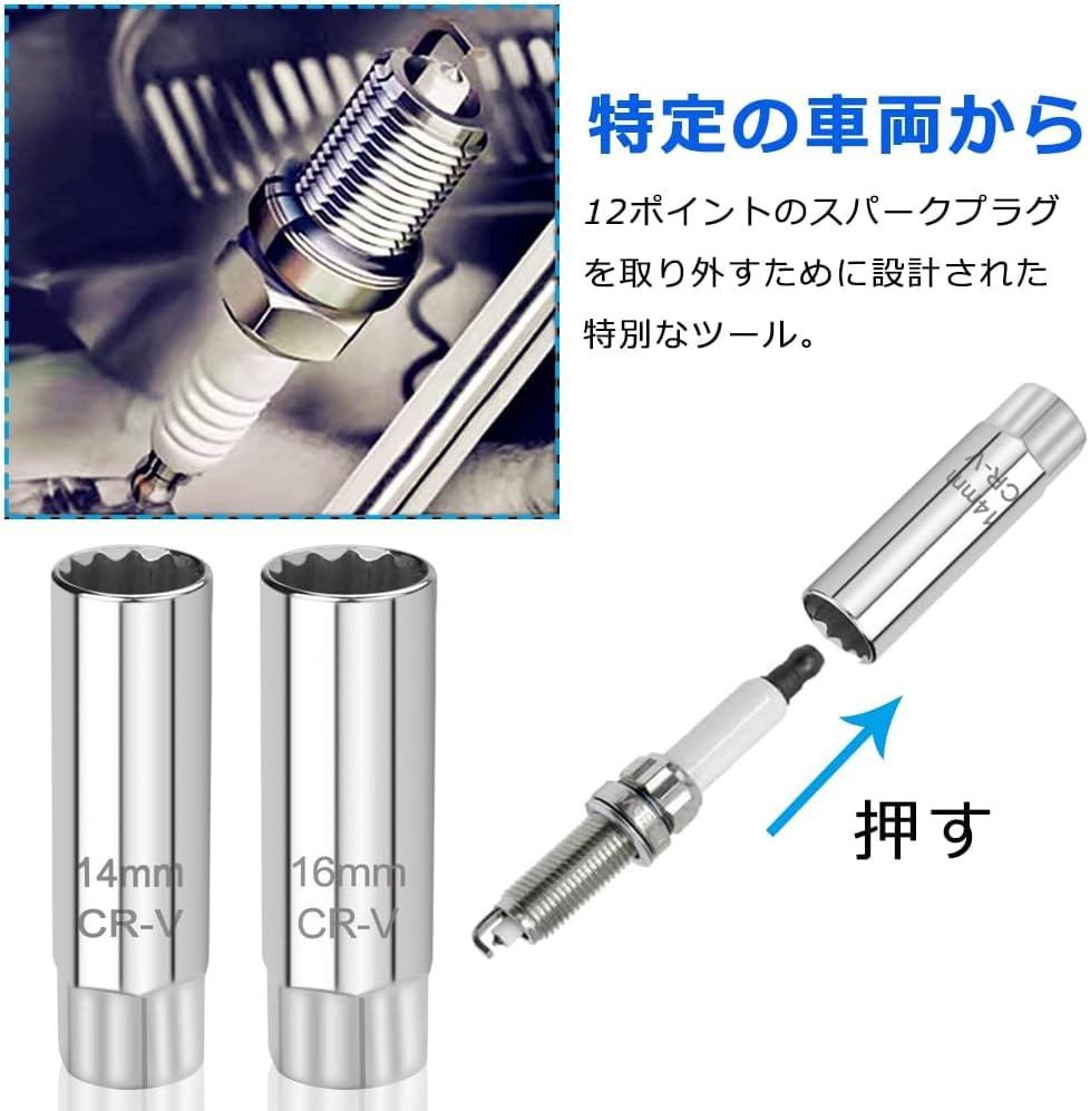 プラグレンチ スパークプラグレンチ 専用ソケット 2本セット 12角薄壁 薄肉タイプ 差込角(3/8) 薄肉で、自動車等のプラグ交換に (14mm & 16mm)