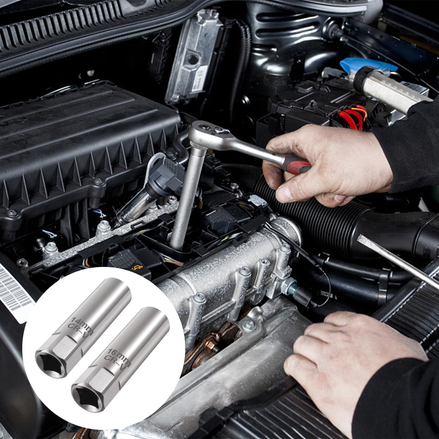 【梱包】:スパークプラグ取り外しスパナ,差込角が3/8インチで、14mmモデルは約5cm、16mmモデルは約6.35cmです。扱いやすく、プラグホールにねじ込むときに内部のネジ山を損傷することがない。また、より大きな圧力にも変形することなく耐えることができます。と持ち運びに便利で柔軟性があり、狭い環境でも使用できます。