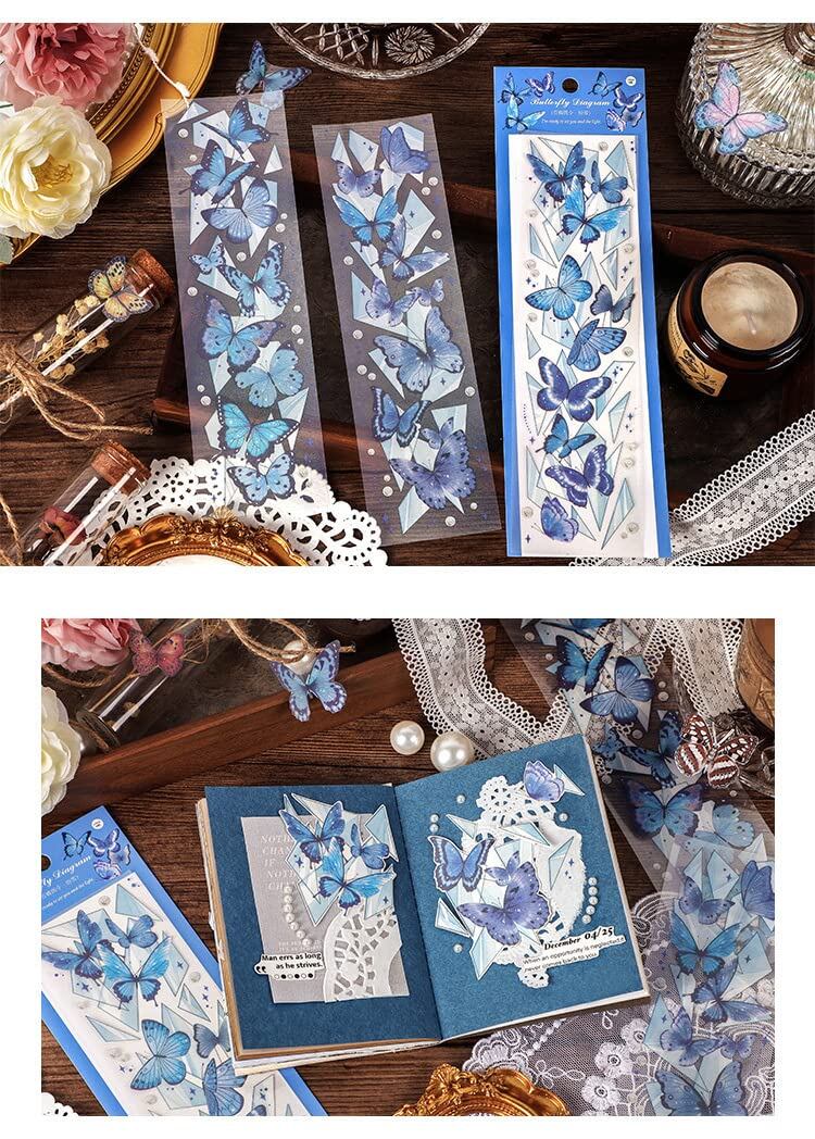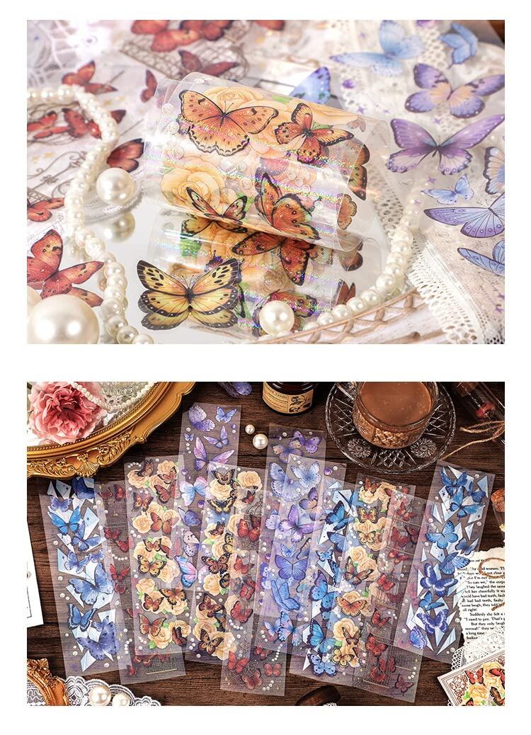 コラージュ 素材 シール フレークシール ステッカー 大量 手帳 おしゃれ 防水 かわいい 花 蝶 (蝶の世界)