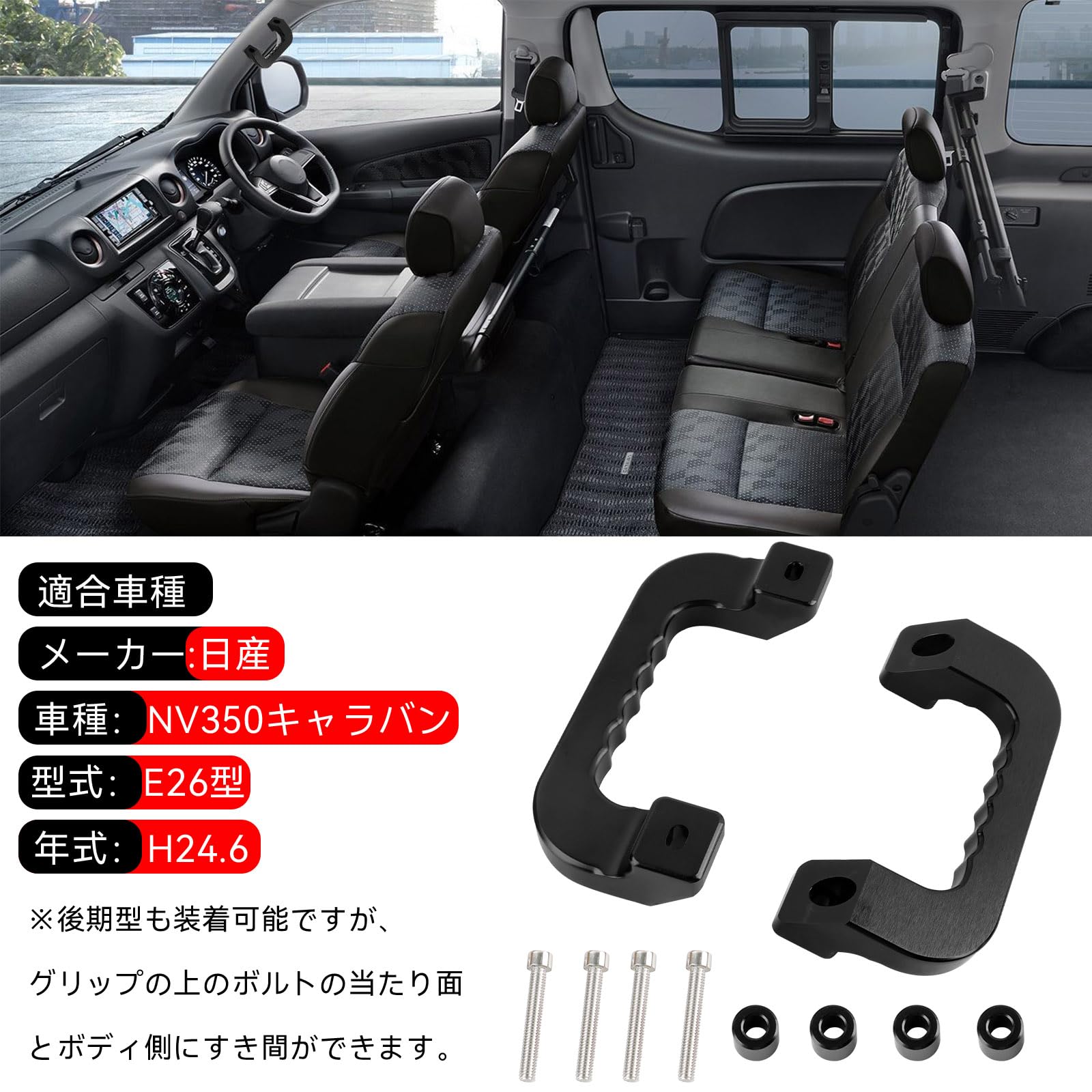 3. 適合車種 メーカー:日産 型式:NV350キャラバン 型式:E26 年式:H24.06~ 補助グリップ本体×2(運転席側×1・助手席側×1)