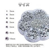 セット内容:半円パール約3300粒セット、サイズ:2mm(約1500個)、3mm(約1000個)、4mm(約400個)、5mm(約250個)、6mm(約100個)、8mm(約60個)、10mm(約30個)。(人工数のため、差がある場合がありますのでご了承ください。)