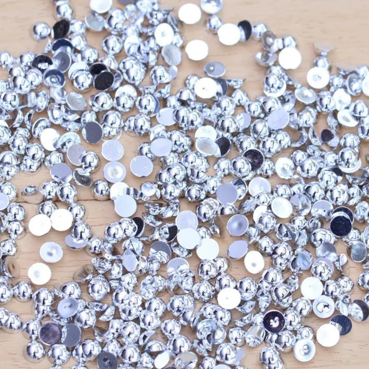 YANYULI 半円パール パールビーズ 約3300粒セット 手作りアクセサリーパーツ 光沢 半球パール ミックスサイズ 大容量 きらきらビーズ DIY ハンドメイド素材 ネイルアート 工芸品の装飾 携帯ケース 収納ケース付き (シルバー)