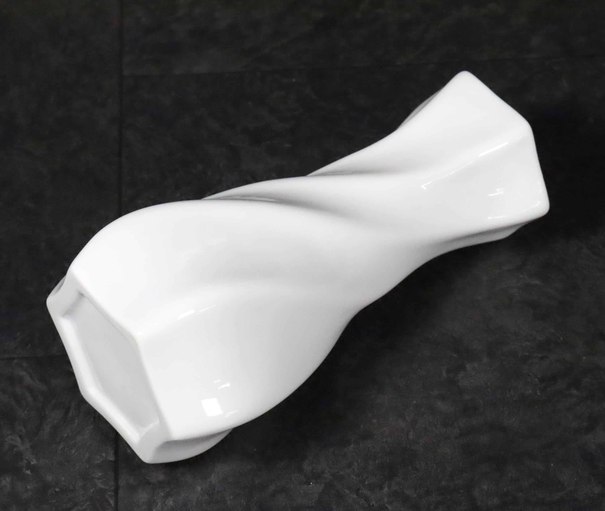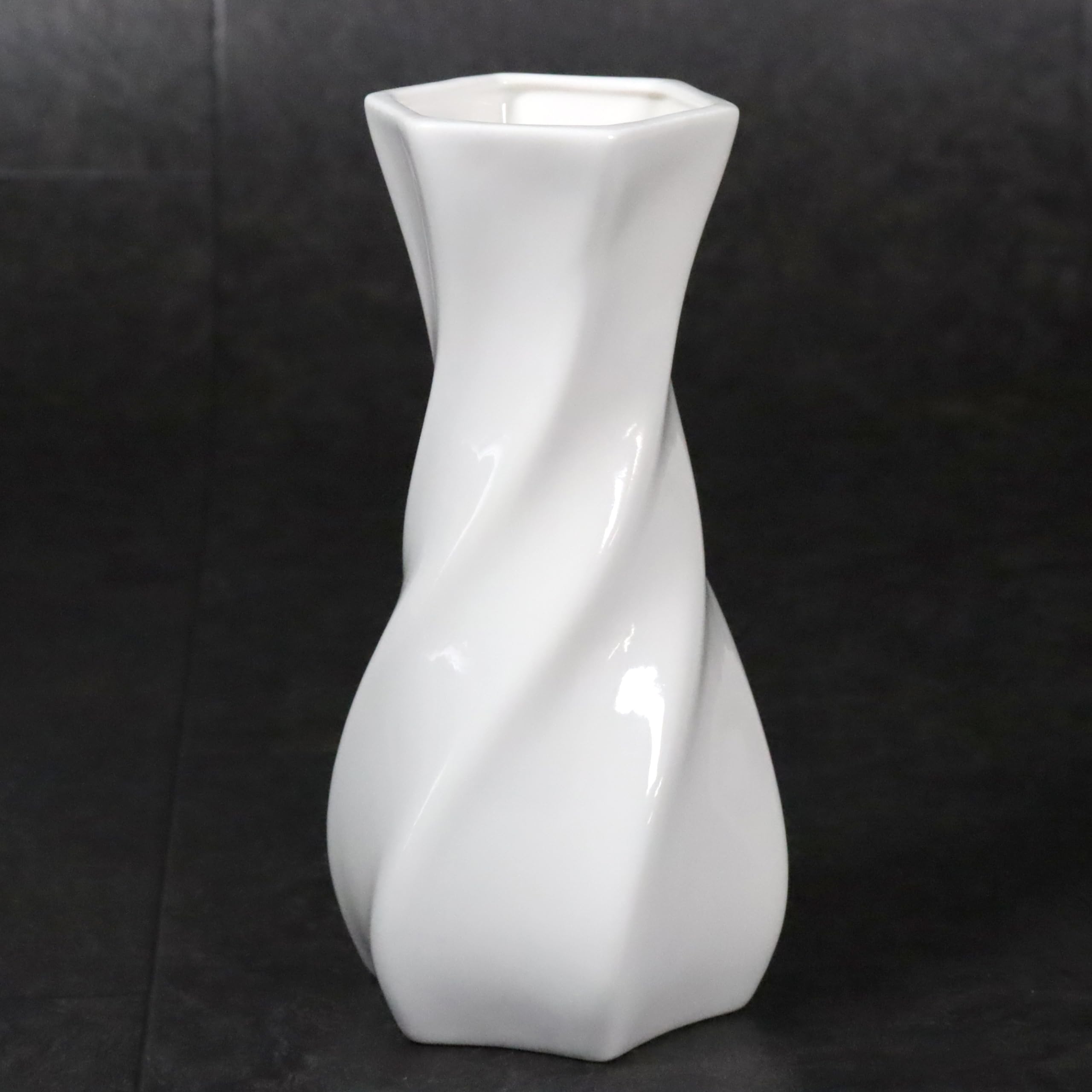 六角形のスタイリッシュな口部が特徴的な花瓶です。首の部分がキュッと締まっているので、お花をまとめて投げ込むだけで見映えよく広がります。
