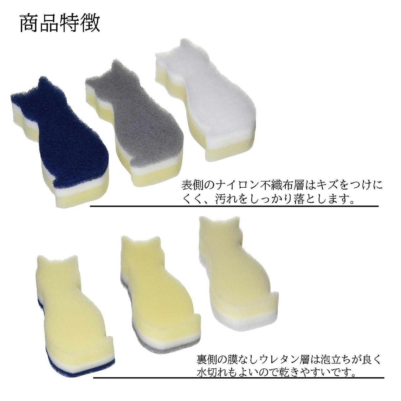 ●保管時にスポンジを立てておくことができます。キッチンにちょこんと座る猫の姿が可愛いスポンジです。