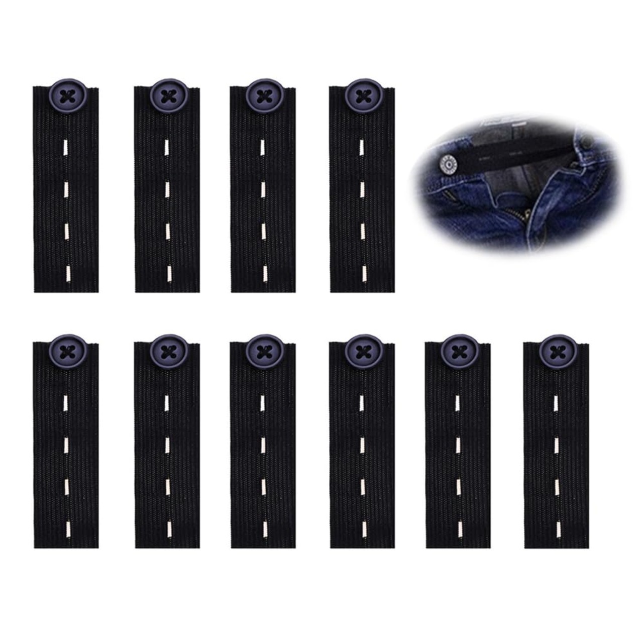 LIANHATA ウエスト伸ばす ウエスト調整お直し 10枚セット 弾力性 ボタン ウエストサイズ調整 エラスティック 伸ばす ィック ブラック (B)