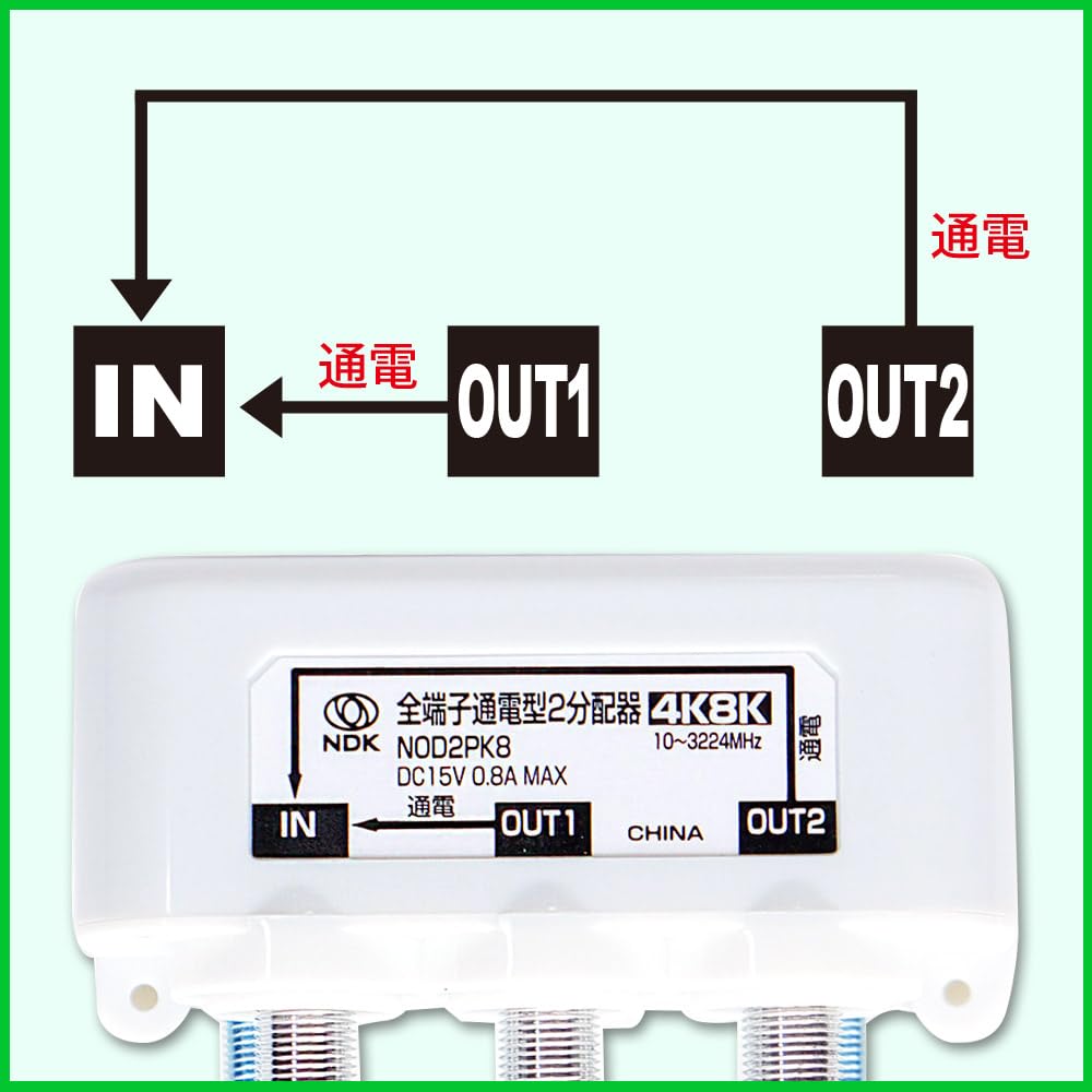 二幸電気工業 アンテナ分配器 2分配 ( 4K 8K BS CS CATV 地デジ ) 屋外用 全端子通電型 2分配器 (NOD2PK8)