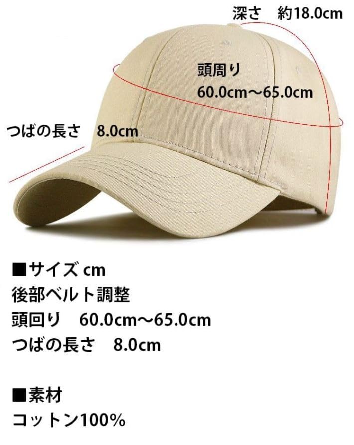 ■サイズ cm 後部ベルト調整 頭回り 60.0cm~65.0cm つばの長さ 8.0cm