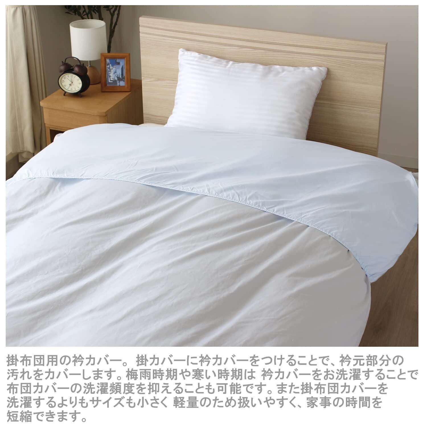 掛け布団用の衿カバー。 掛カバーに衿カバーをつけることで、衿元部分の汚れをカバーします。梅雨時期や寒い季節の時は 衿カバーをお洗濯することで布団カバーの洗濯頻度を抑えることも可能です。また掛け布団カバーを洗濯するよりもサイズも小さく 軽量のため扱いやすく、家事の時間を短縮できます。ポリエステル生地の為、洗濯後もシワになりにくく乾きやすく取り扱いしやすいです。