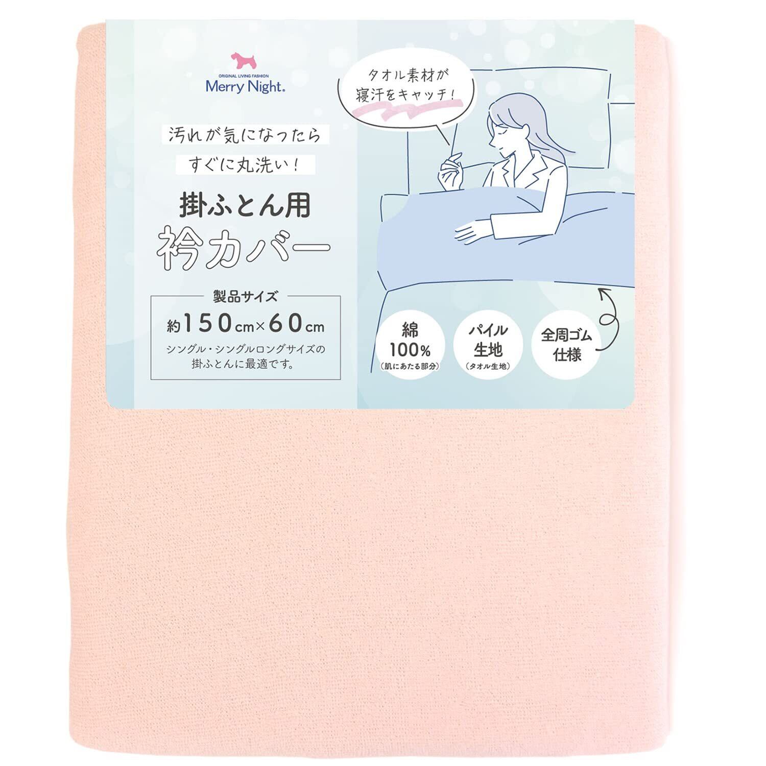 メリーナイト(Merry Night) 衿カバー シンカーパイル ピンク 約150×60cm (シングル・シングルロングサイズの掛け布団に最適)全周ゴム仕様 パイル部分綿100% タオル生地 吸水性 洗えるEK1522-16