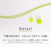 【商品内容】 ・靴紐×2 ・留め具×2 ・先端カバー×2 (各1足分) 【サイズ】 ・長さ 120cm ・幅 3mm ・厚み 3mm ・重さ 25g 【素材】 ポリエステル