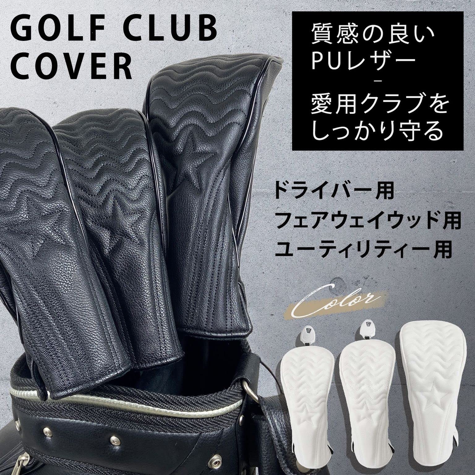 anddat ゴルフヘッドカバー PUレザー 防水仕様 星 スター ブラック 黒 ドライバー用 DR フェアウェイウッド用 FW