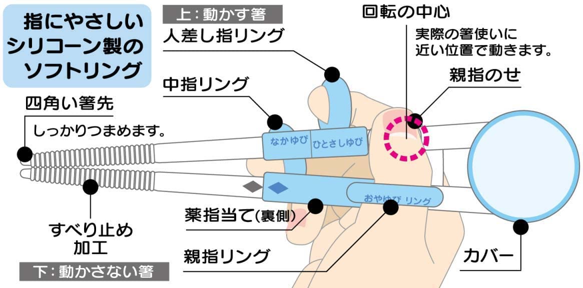 素材・材質:箸・カバー=ABS樹脂 リング=シリコン樹脂