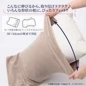 タテに伸びる伸縮性があるので、いろいろなサイズ、形状のまくらに対応(*50X63cmまで対応)。まくらにフィットするので、使用中もずれにくい。