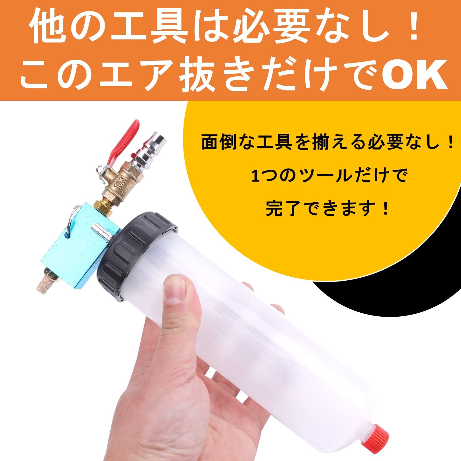 手動でブレーキペダルを踏むといった操作を使用する必要のない空気圧作動式のツールで、愛車のフルード交換やエア抜きをスムーズに行うことができます。