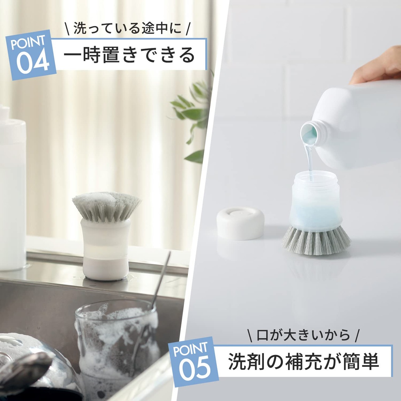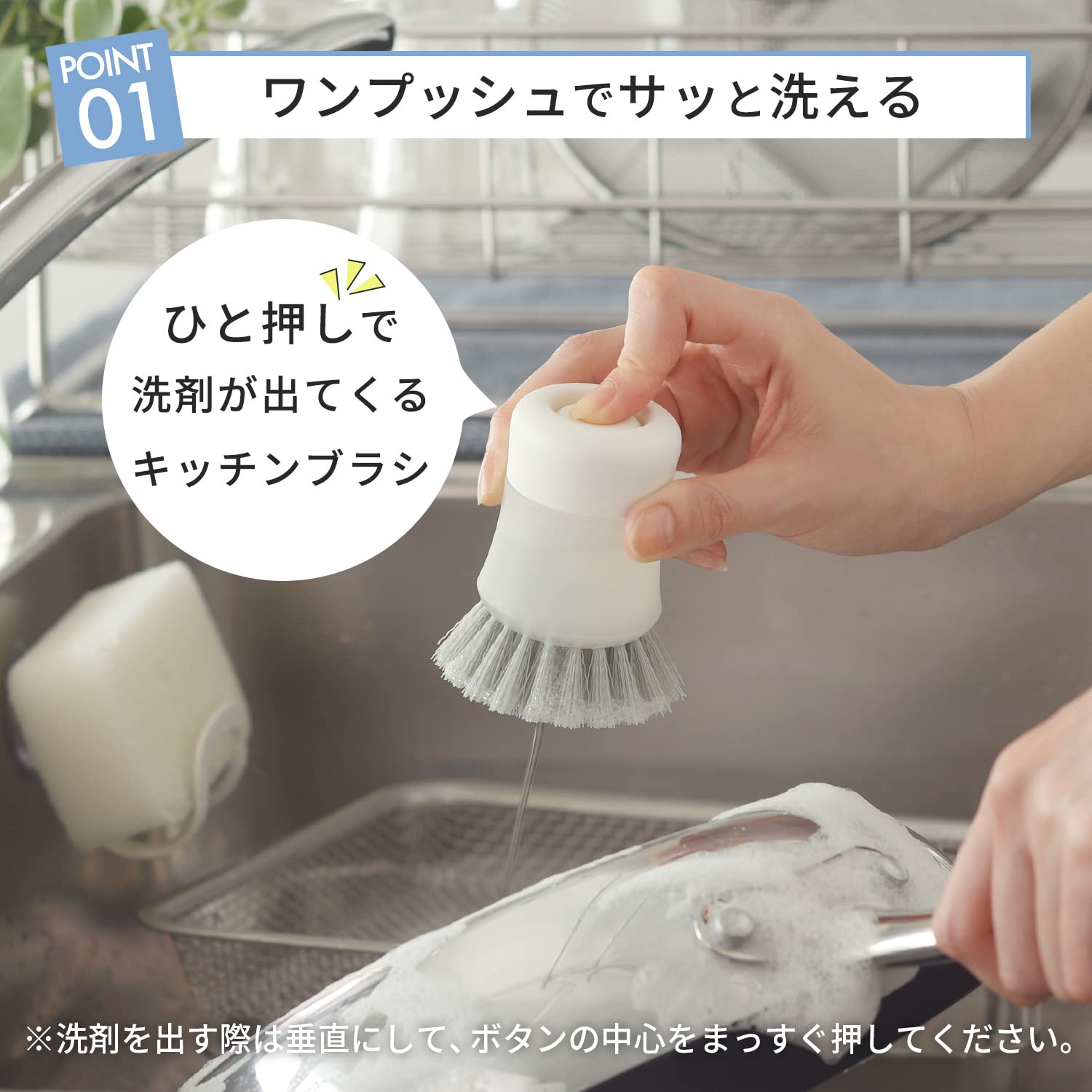 マーナ (marna) 抗菌 キッチンブラシ (ホワイト/洗剤入りブラシ) 食器洗い シンク 台所 (鍋/フライパン) キッチン ブラシ K788W