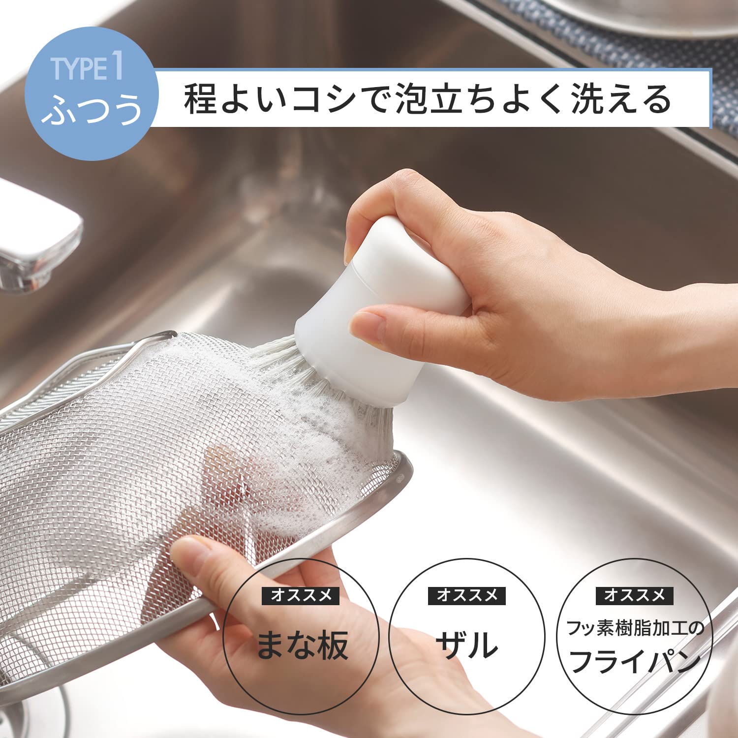 【程よいコシで泡立ち良く洗える「ふつう」タイプ】泡立ち・泡持ちのよいウェーブ毛。傷つけたくない道具も、汚れはしっかりと落としながら優しく洗えます。まな板・ザル・フッ素樹脂加工のフライパンなどにおすすめです。