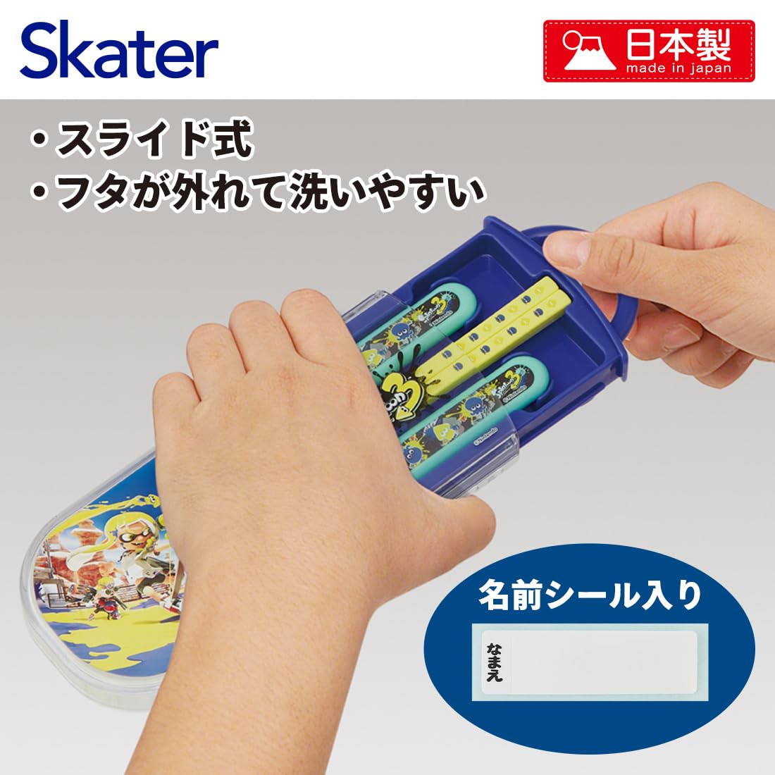 (送料込)スケーター(Skater) 子供用 お弁当 トリオセット 箸 スプーン フォーク キッズ カトラリー 抗菌 加工 開けやすいスライド式 日本製 スプラトゥーン 3 男の子 TACC2AG | デイリーメインベース