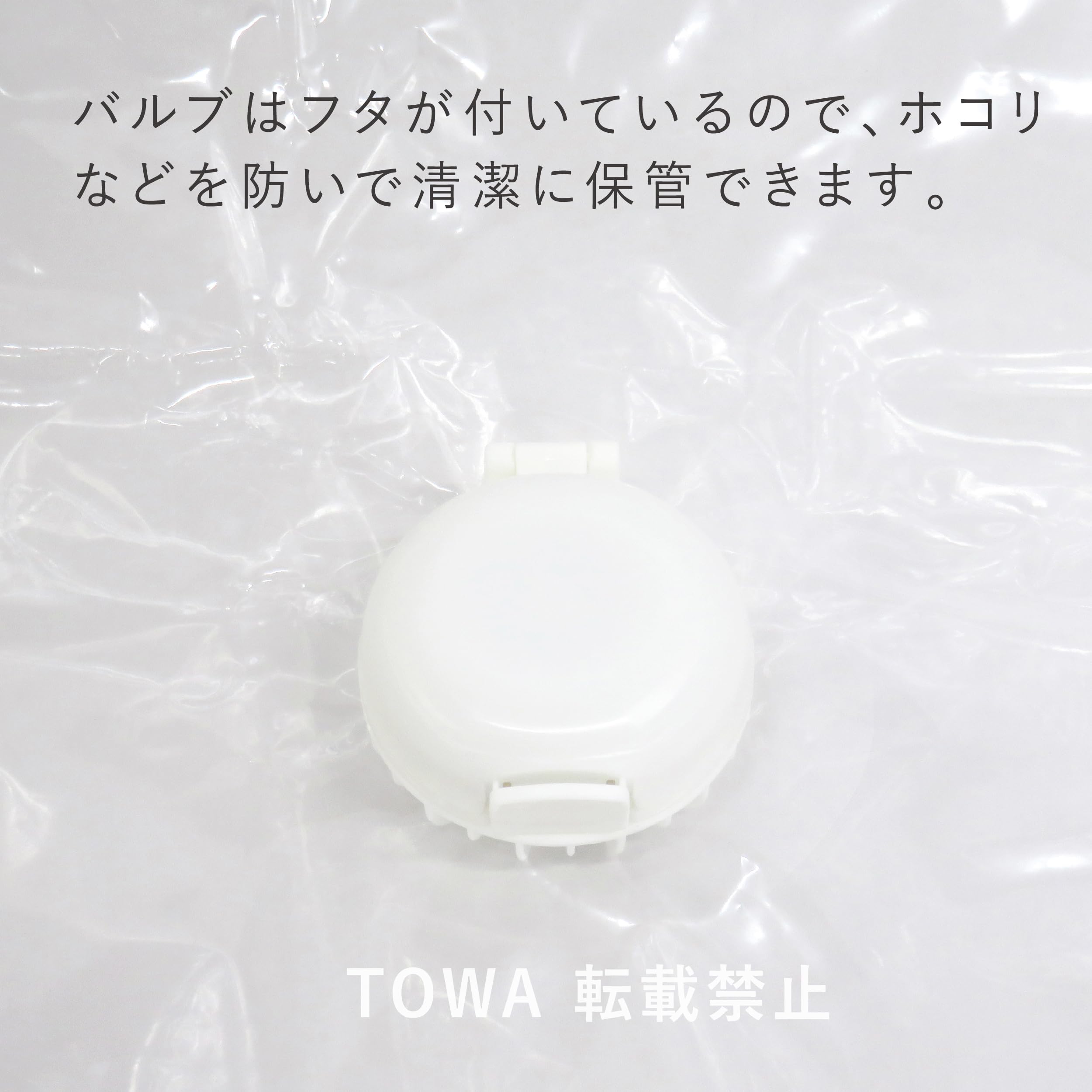●多くの掃除機タイプにフィットするやわらか立体弁バルブを採用 ●スティック掃除機・従来型掃除機にも対応した圧縮袋 ●掃除機ノズルとのすき間を減らしてスピード圧縮※当社比 ●くぼみ付きのバルブで凸形吸引口でもあてやすい ●わずかにすき間を残して掃除機への負担を軽減します。