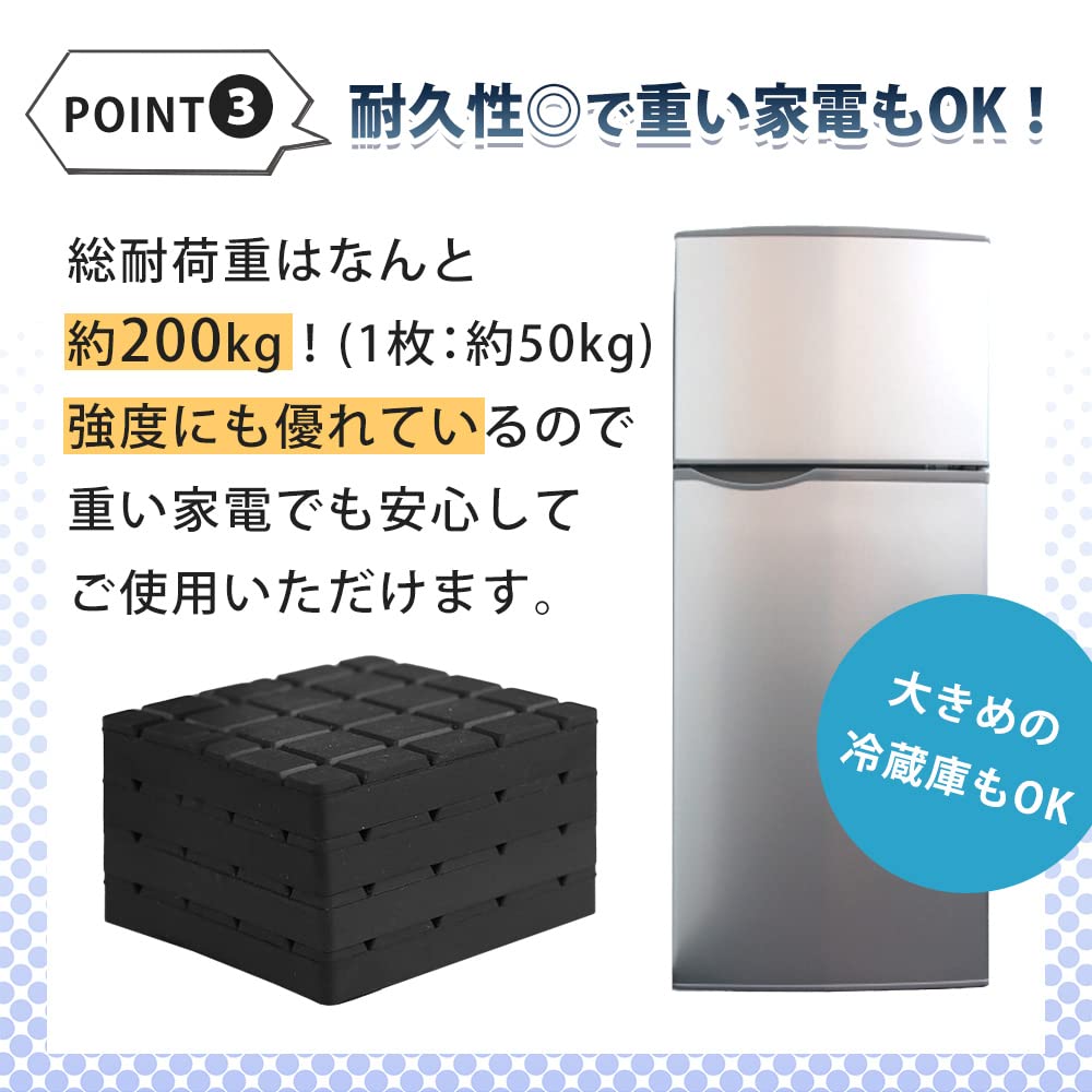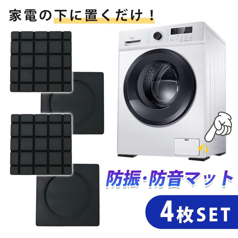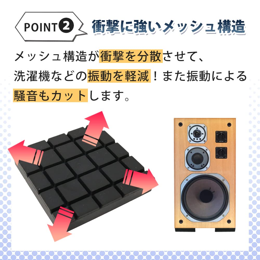 (送料込)mitas 防振マット 4枚セット 衝撃吸収 防音 ゴムメッシュ構造 滑り止め 置くだけ簡単 防音マット 家電用 緩衝パッド 騒音対策 床キズ防止 防振ゴムパッド スピーカー 洗濯機 冷蔵庫 家具下 滑り止め (ブラック) | デイリーメインベース