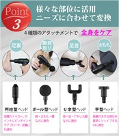 4種類のアタッチメント付き:腰・肩・首周り、足裏、足首、太ももなどニーズに合わせて変換。