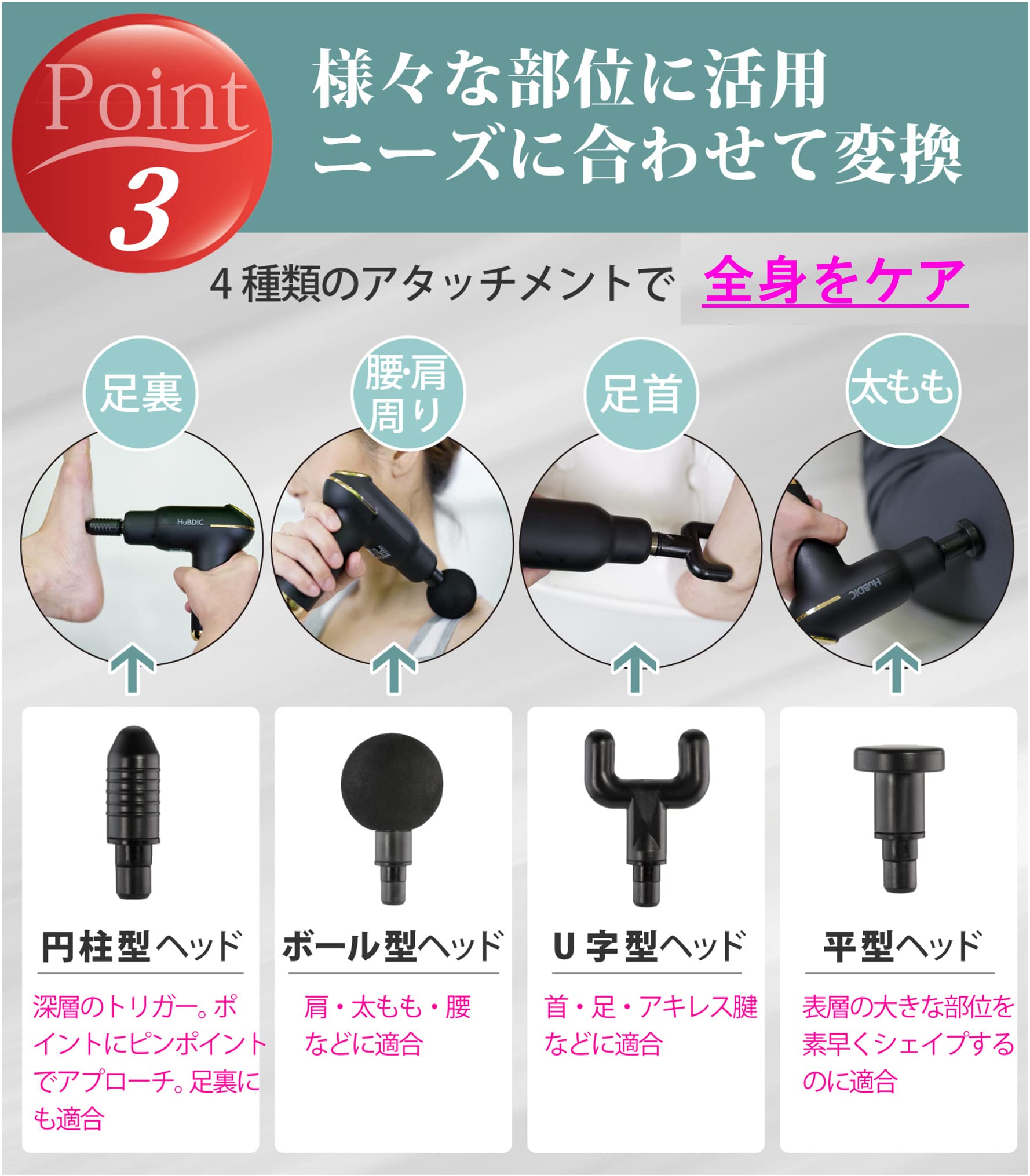 (送料込)ヒュービディック(Hubdic) 温熱 筋膜リリースガン 5段階温熱 強力振動 筋肉リラックス ハンディガン 軽量持ちやすい 4種のアタッチメント付 プレゼントに最適 ブラック | デイリーメインベース