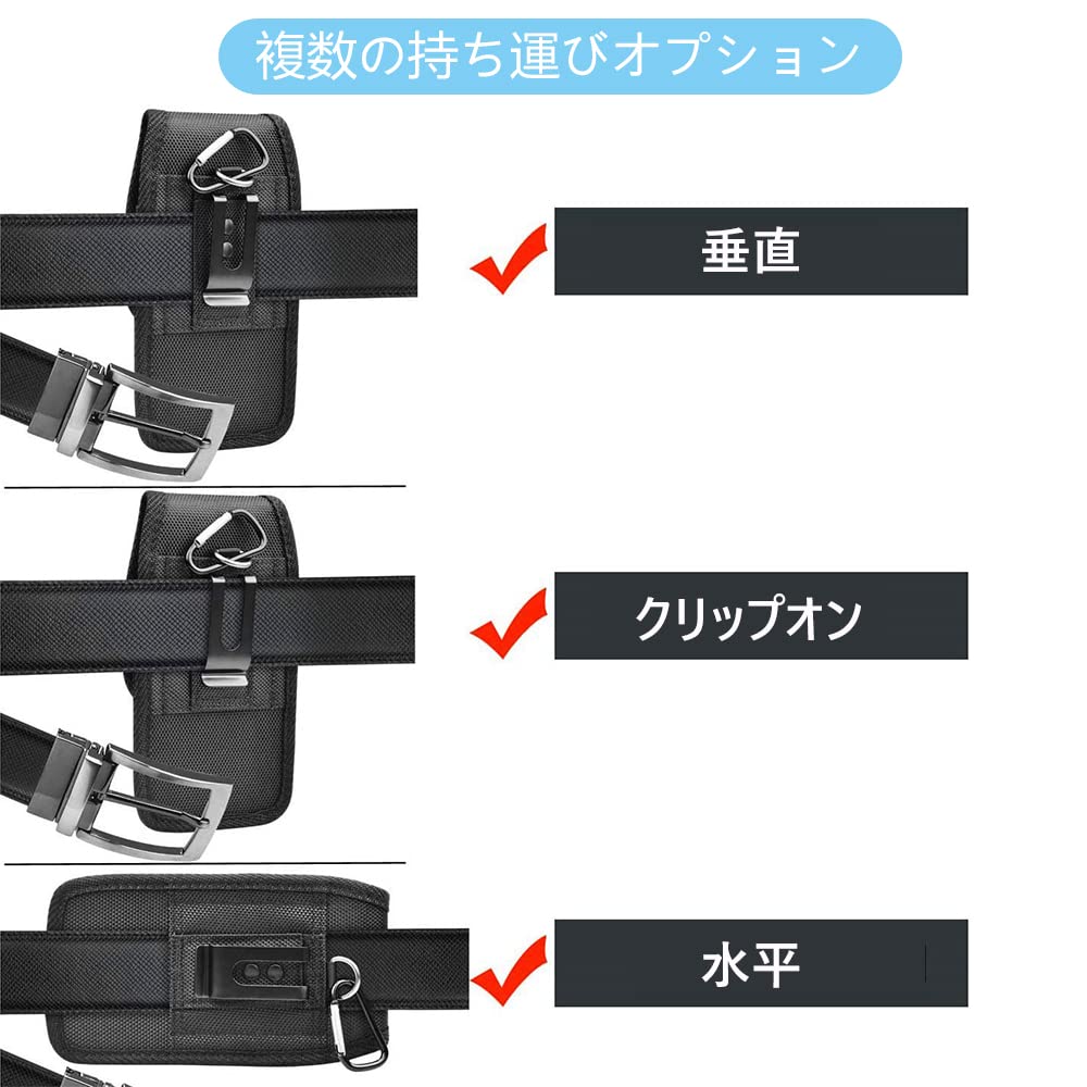 【取り付け簡単】スマホポーチは様々な幅のベルトに取り付けできます,縦横どちらの向きでもご使用できます,カラビナ付き,リュックやカバンに引っ掛けて持ち運べることができます。