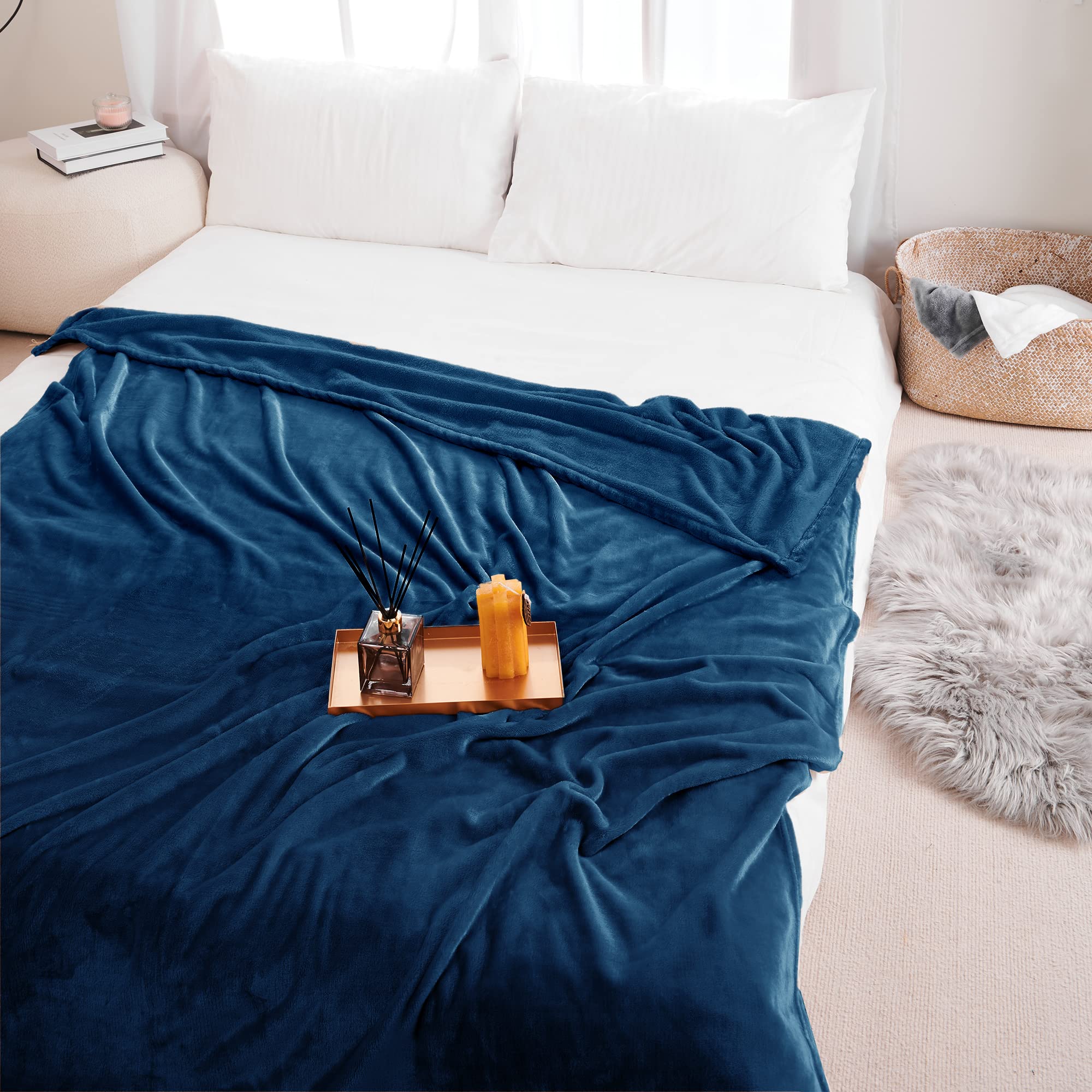 Deconovo 毛布 ひざ掛け 夏用 ハーフケット ブランケット 180x200cm ダブル ネイビー シングル 柔らかい 静電防止 寒さ対策 おしゃれ マイクロファイバー あったかい 四季適用 ふわふわ 洗える