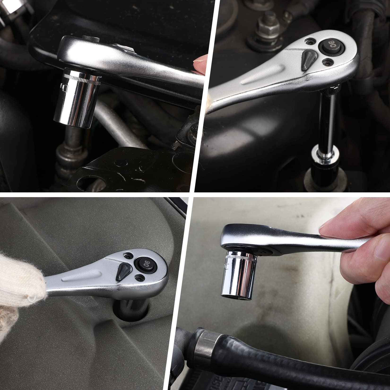 DuraTech ソケットレンチセット 差込角6.35mm 20点組 ラチェットレンチ 六角ソケット ラチェットハンドル クイックリリース ソケット4~13mm ビットソケットH3 H4 H5 H6 H8 H10 T10 T25 T30 メンテナンス用 自動車 車 バイク 車いじり 整備工具 【収納ホルダー付き】