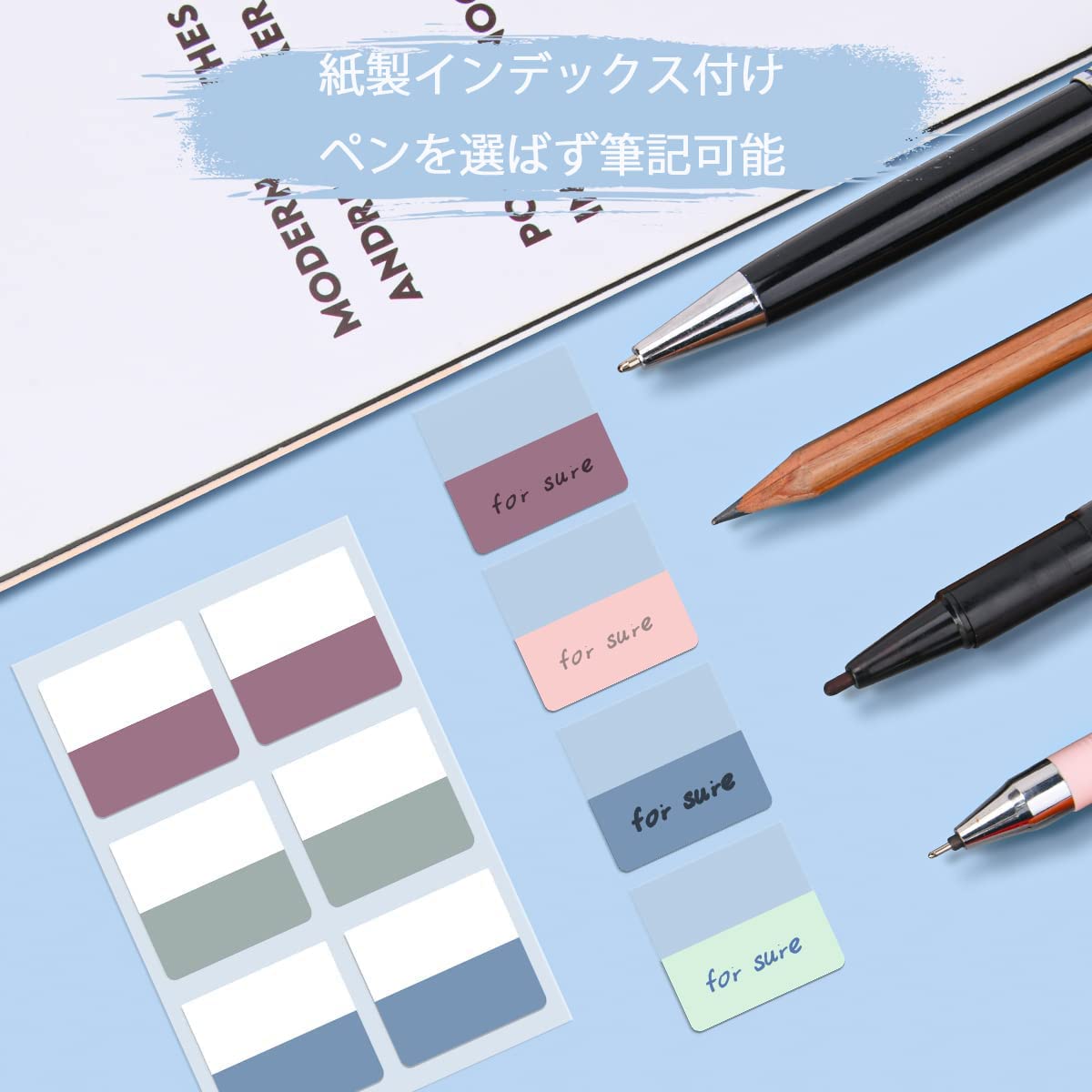 【紙製インデックス付けフィルム付箋】 普通のフィルムふせんと違って、インデックス部分が紙製なので鉛筆や水性ペンなどペンを選ばず記入が可能です。キレイにはがせて、繰り返し貼ることができるので非常に経済的です。シート状で持ち運びに便利で、勉強などで頻繁に使うシーンでも、サッと取り出せて便利です。