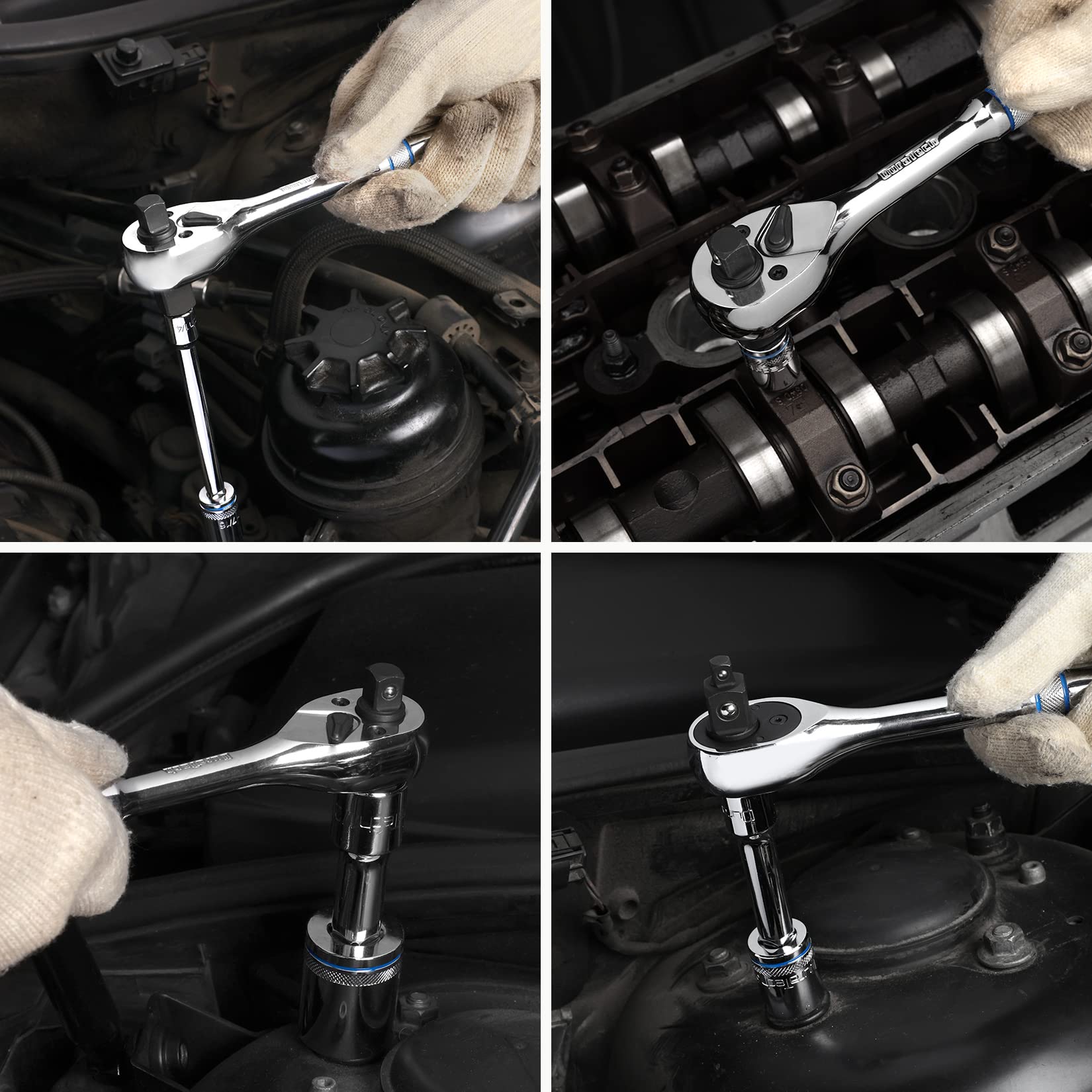 【高品質な材質】ラチェットハンドルは表面にクロムメッキ、完全的に熱処理されたCR-MO材質を利用して、衝撃性が非常に優れて、耐久性も実現しました。ソケットとエクステンションバーは表面にメッキされ、完全的に熱処理された50BV30クロムバナジウム鋼を利用して、強度と耐摩耗性を完璧に実現されます。 錆ににくい、長持ちします。