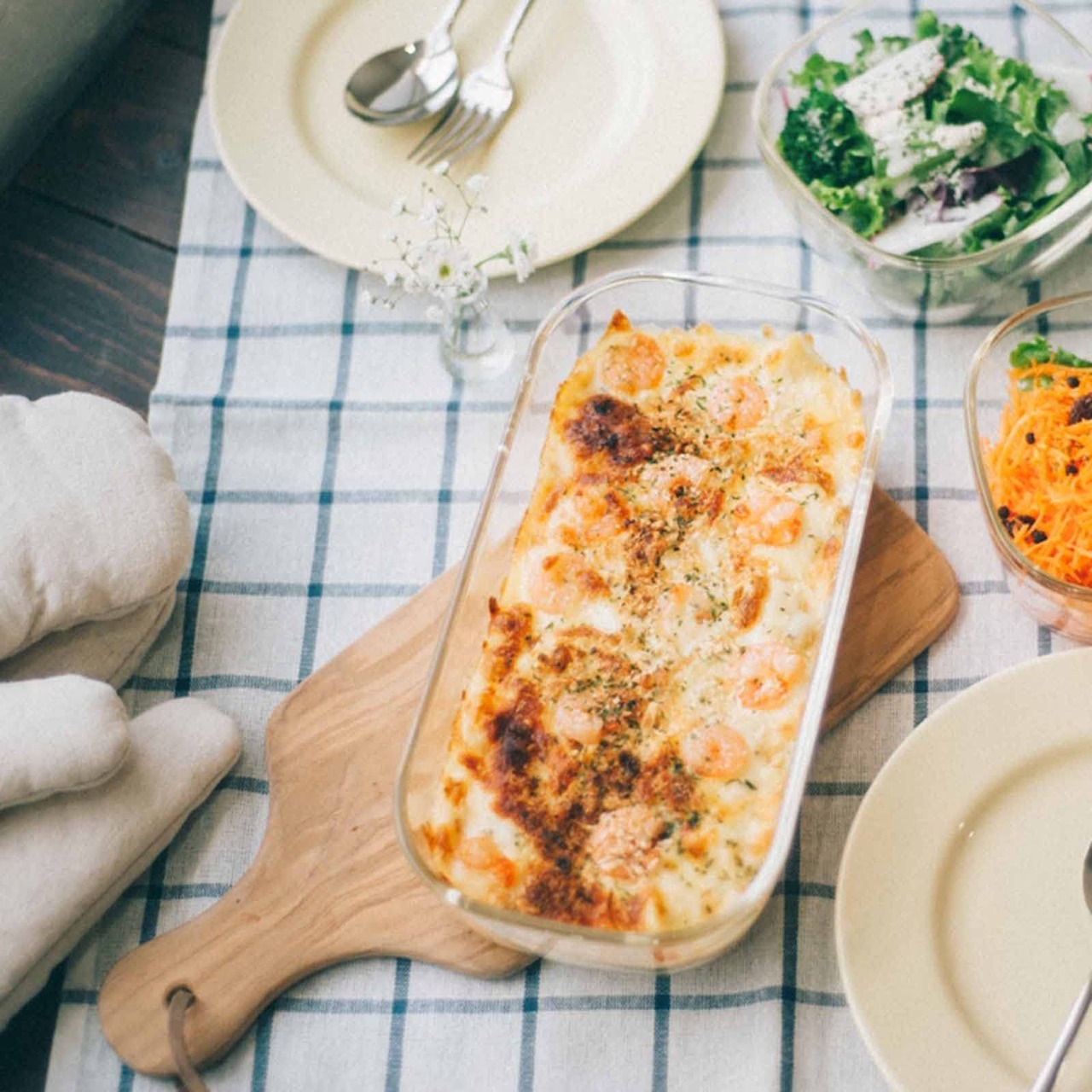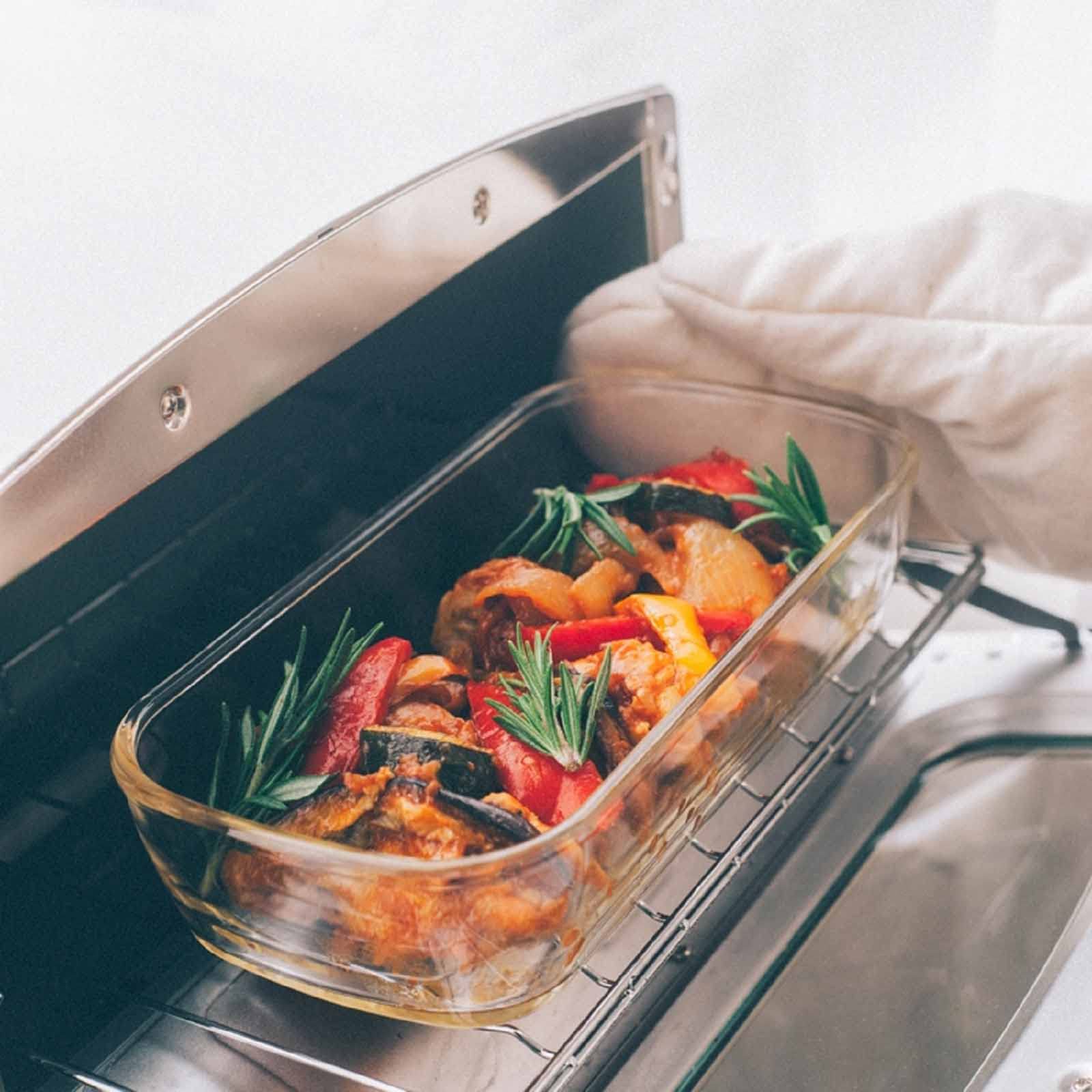 耐熱ガラスの保存容器なので、電子レンジ対応・フタを外してオーブンでも使える。より幅広い調理や保存におすすめ