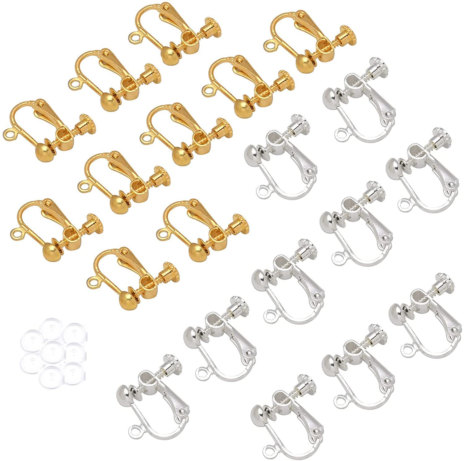 YFFSFDC イヤリングパーツ 20個入 丸玉タイプジュエリー イヤリング金具 ネジバネ式 ピアスパーツ DIY ハンドメイド 2色ゴールド+シルバーシリコンカバー付きアレルギー 対応可能