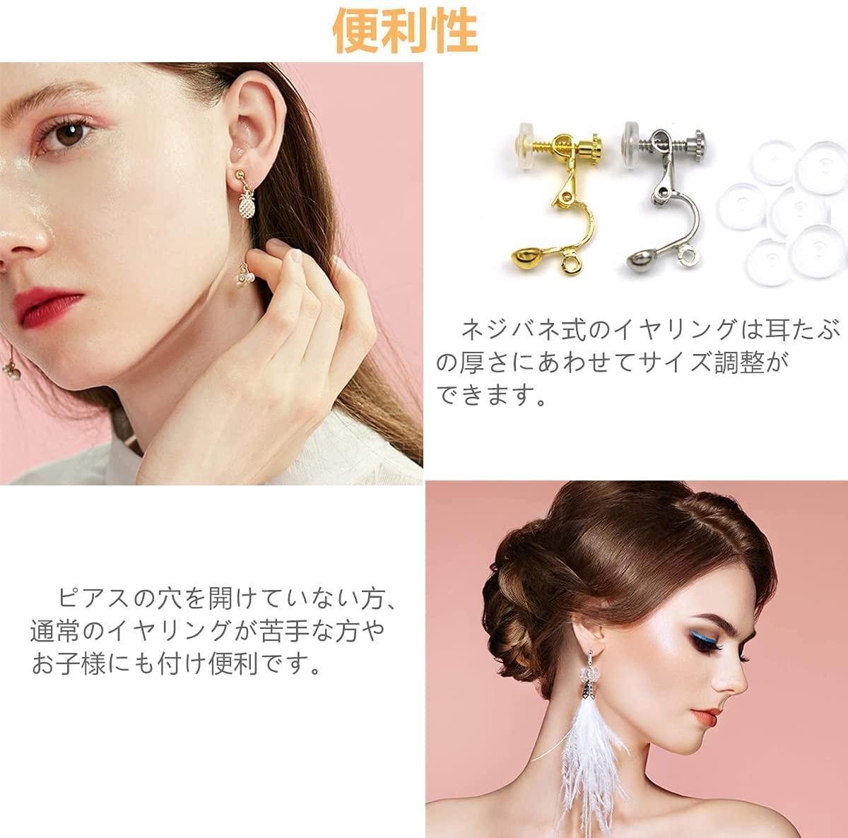 【使い簡単】ピアスを差し込んで、キャッチをつけるだけで、手軽にネジ式のイヤリングへ変身させちゃういます。シリコンのクッションが耳たぶを保護してくれます。