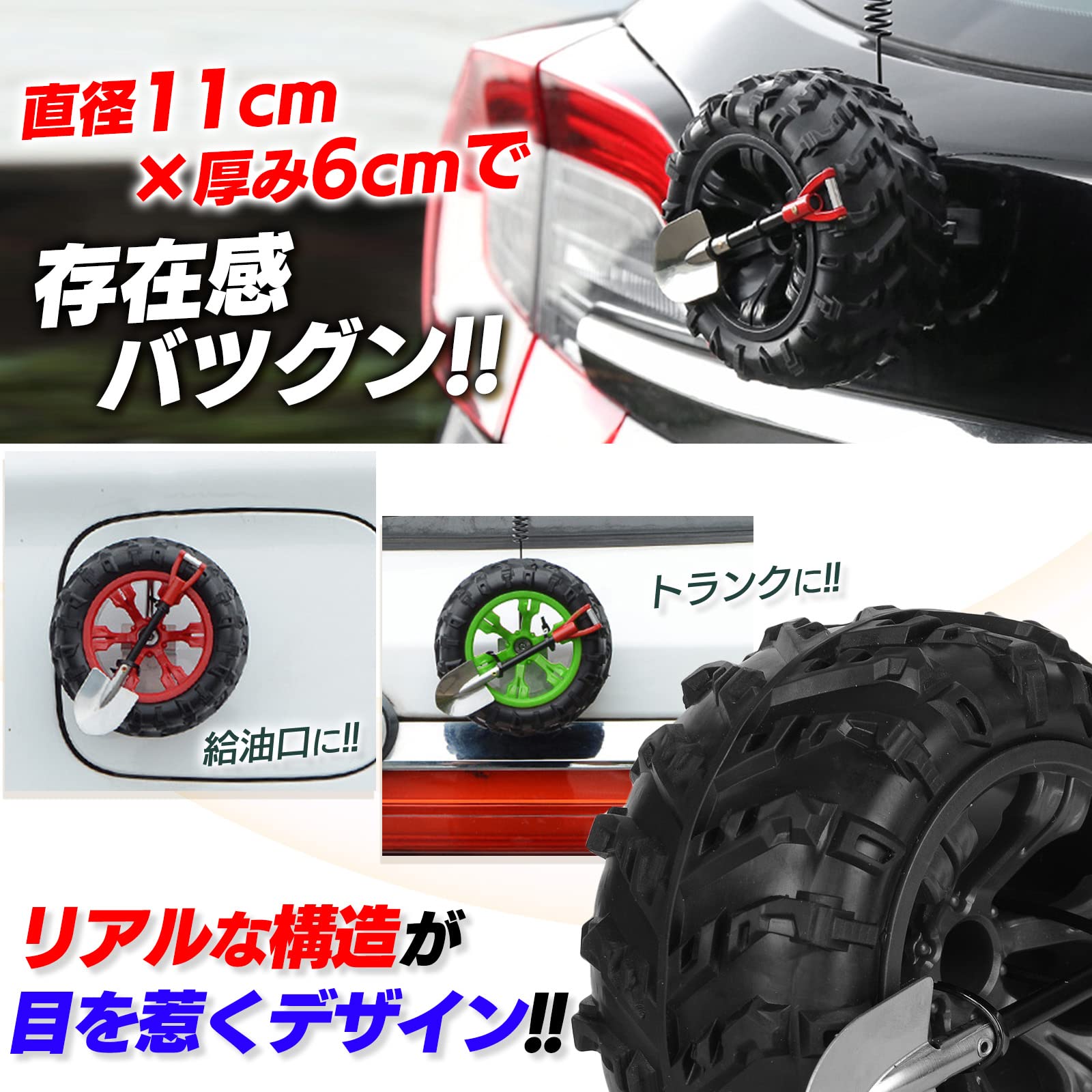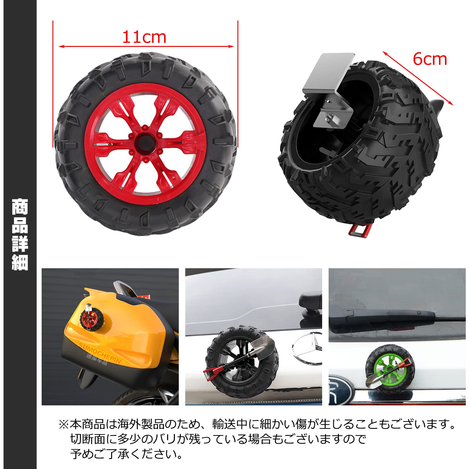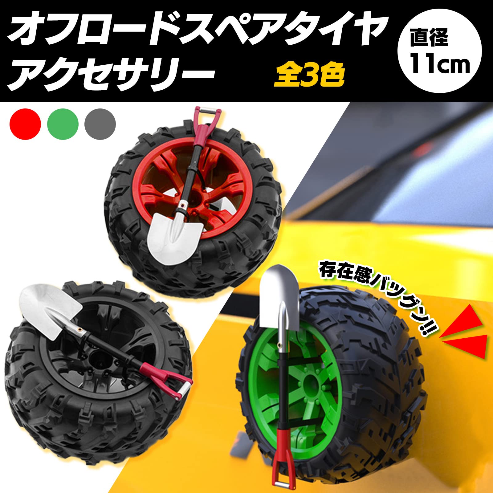 汎用タイプのミニスペアタイヤ(ホイール付き)&背面スコップのセットになります。 オフロード専用のスペアタイヤをイメージしたデザインとなっていて、カスタムやドレスアップ、愛車のワンポイント用パーツとしてお楽しみ下さい。 内装、外装ともに両面テープで取り付けできる箇所ならどこにでも装着可能です。