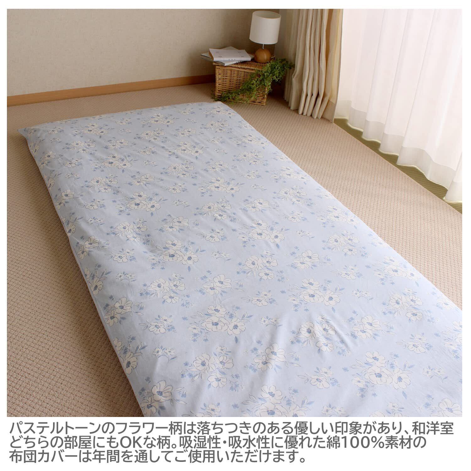 (送料込)メリーナイト 敷き布団カバー 「アネモネ」 ブルー シングル 約105×205cm 綿100% 吸湿性 通気性 心地よい肌触り オールシーズン 洗える CT13013-76 | デイリーメインベース
