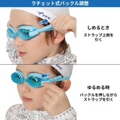 ひっぱるだけでストラップの長さ調整ができる4~9歳用ゴーグル。