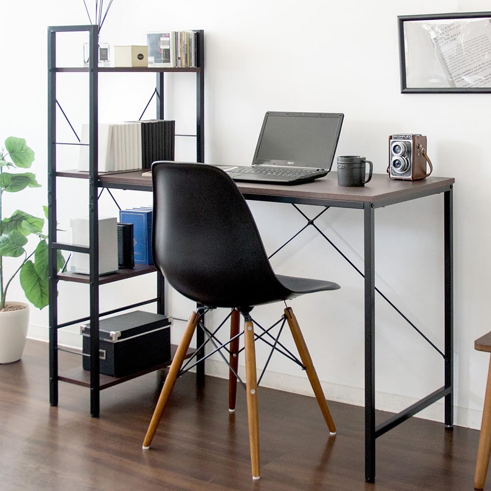 デスクとラックが一つになった便利なデスク。 4段のオープンラックから必要なものをすぐに取り出せるので作業がはかどります。 パソコンや資料を置ける広さの天板で勉強やテレワークに最適。