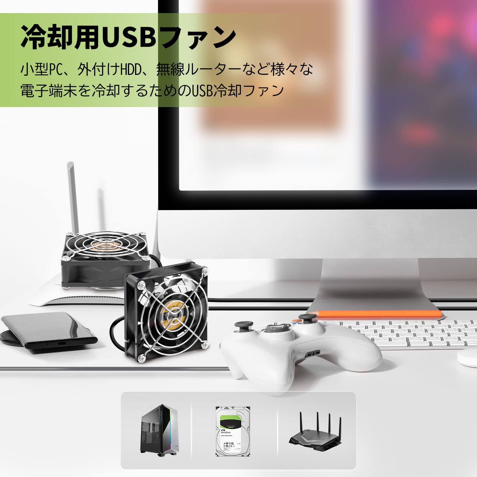 静音ファン、外付けHDD/SSD、WIFIルーター、PS4ゲーム機など様々な電子機械を冷やす為のUSB ファンです。