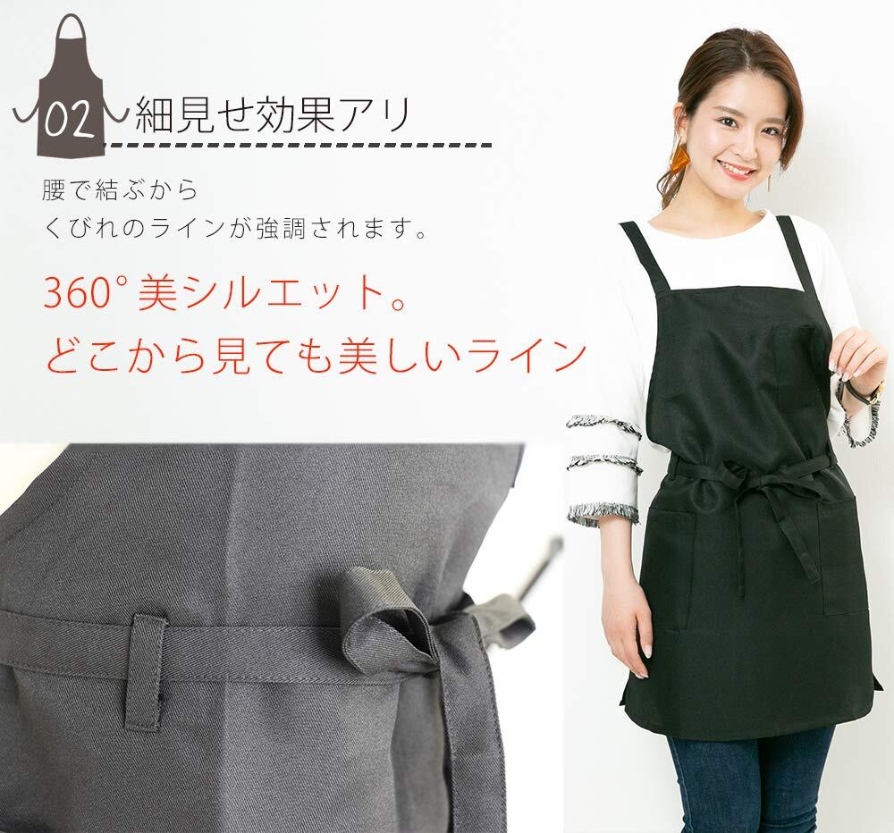 こんな人におすすめ→【おしゃれに仕事したい人】シンプルなエプロンはまるでカフェ店員。テンションあげて家事や仕事をしたい人にお勧めです。 【後姿が気になる人】このエプロンはお尻が隠れるタイプなので、仕事をするときに後姿を気にしたくない人におすすめです。
